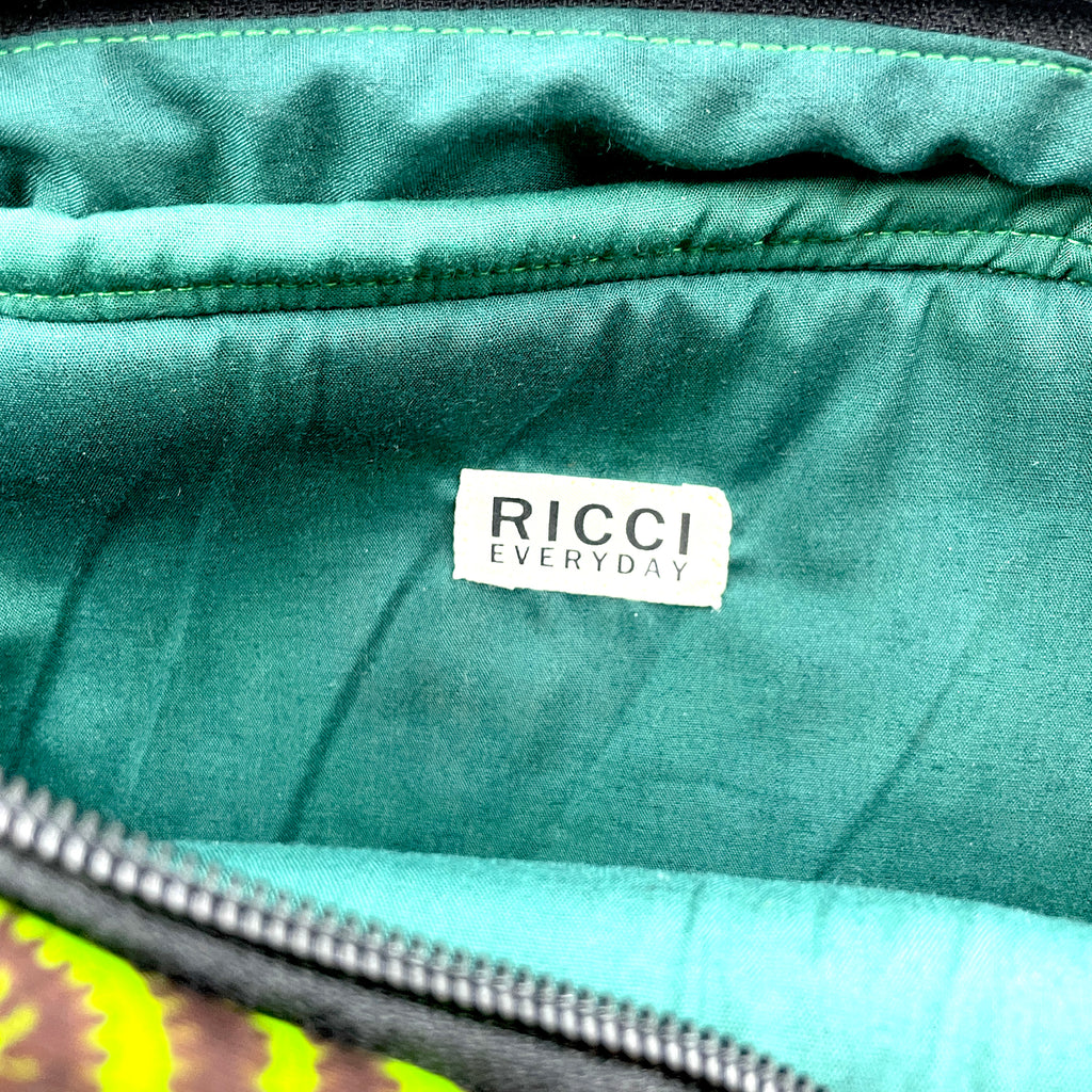 1. RICCI EVERYDAYの製品は、アフリカンワックスプリントの布を使用しています。製品製作時に布に水を通し、色止め加工を施す等、極力、水による色落ちを防ぐようにしております。但し極度な水濡れや摩擦等により色落ちする可能性がありますので、雨の日の使用はお控えいただき、十分にご注意下さい。