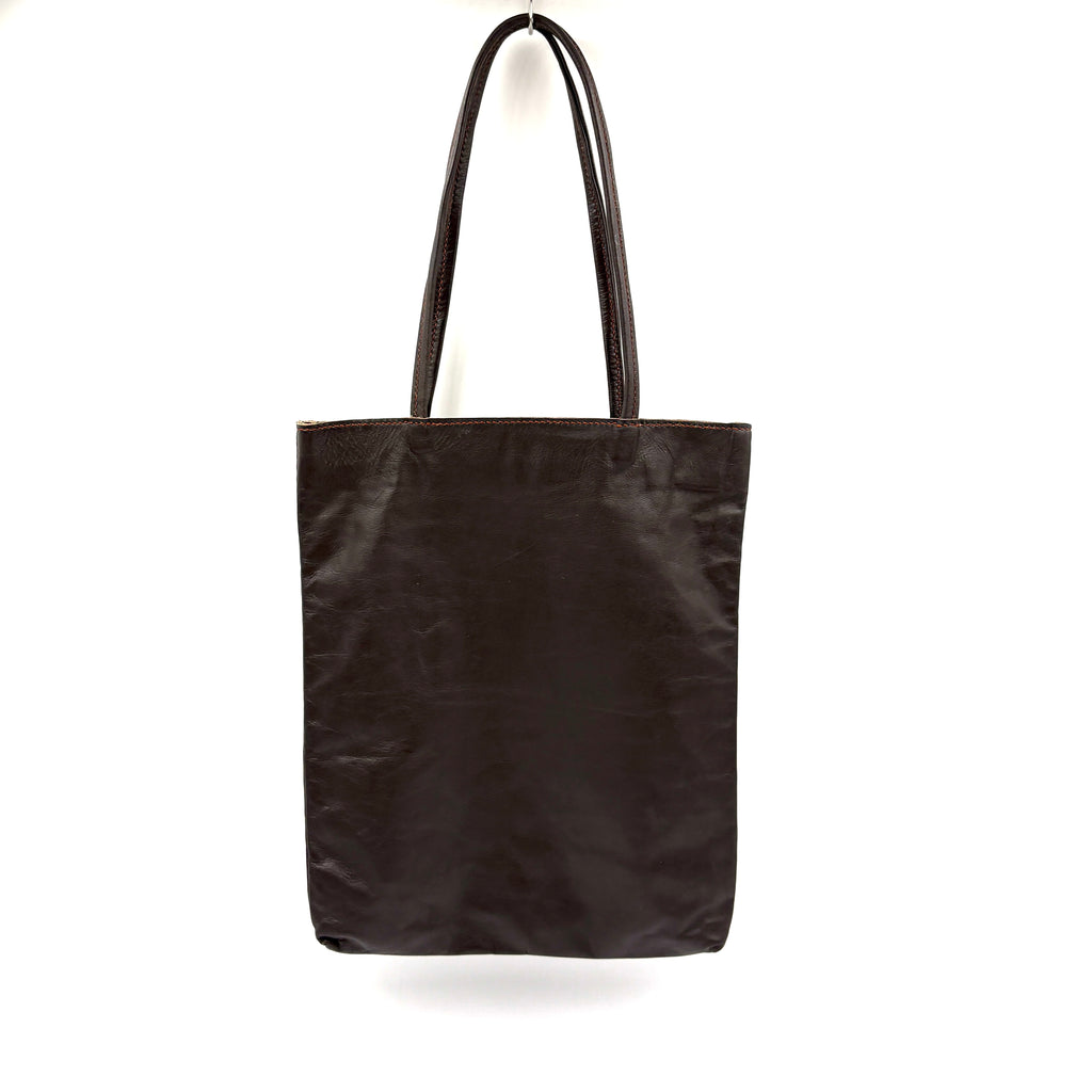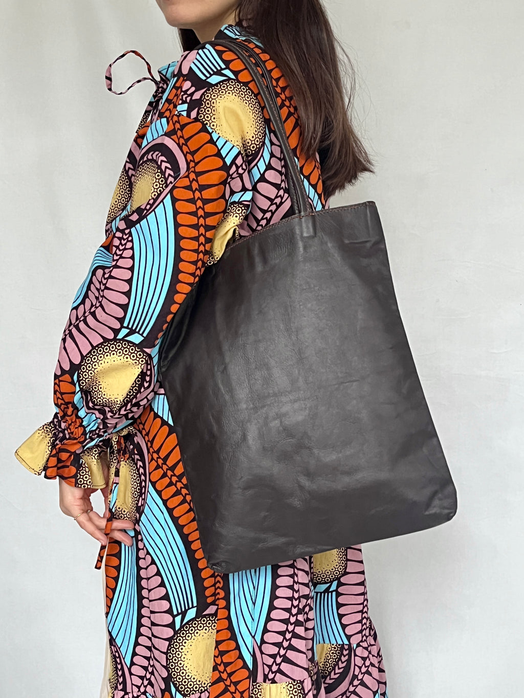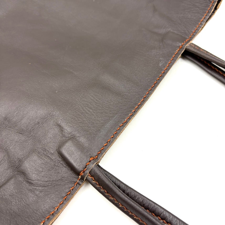 ウガンダでなめされたレザーを使用し、手縫いで仕上げたレザートートバッグ。