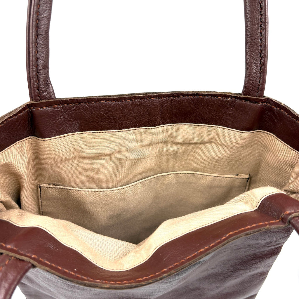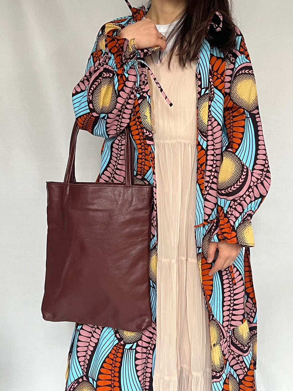 ウガンダでなめされたレザーを使用し、手縫いで仕上げたレザートートバッグ。