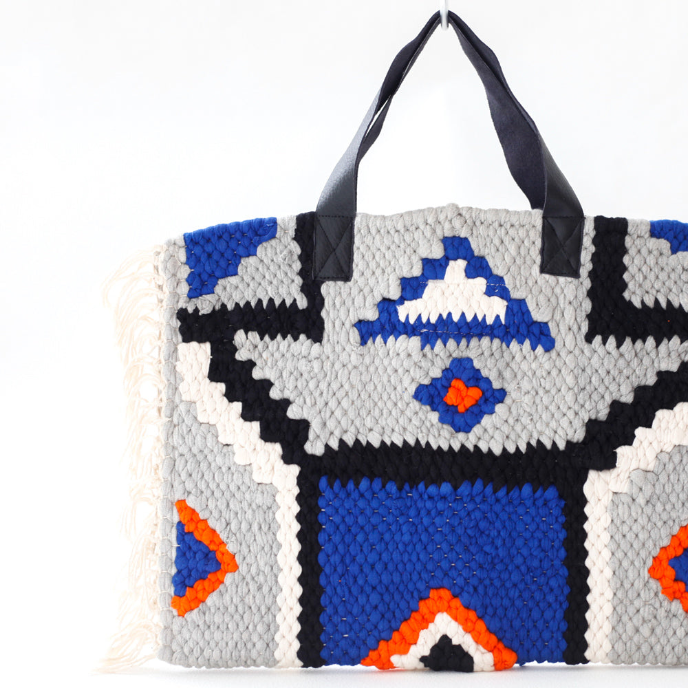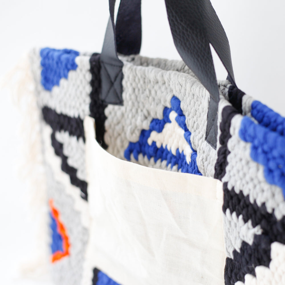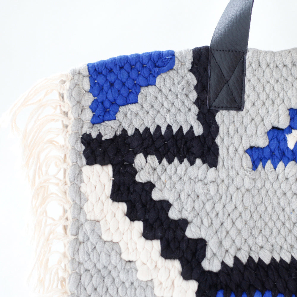 クロシェットストライプバッグ - 幾何学・ブルー&グレー -