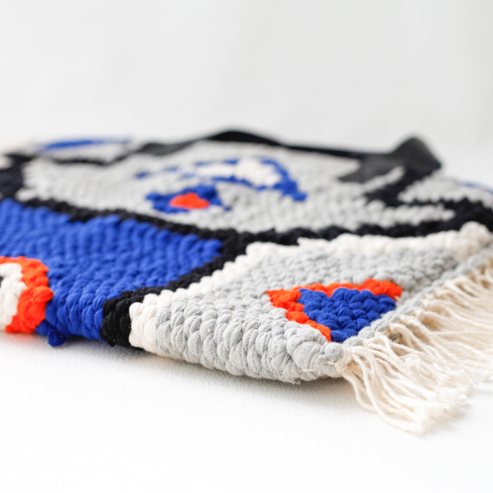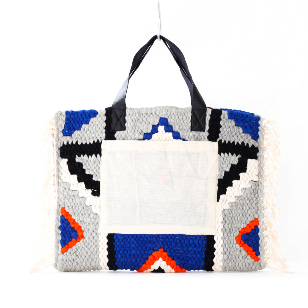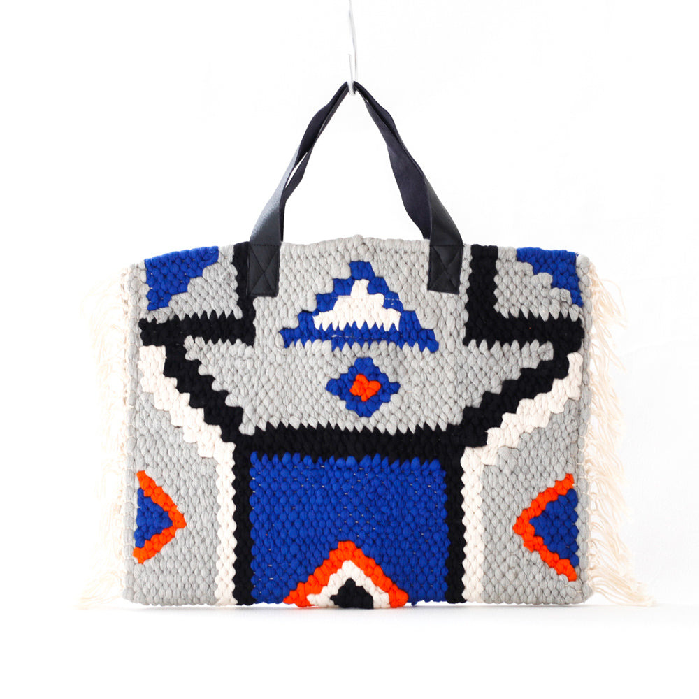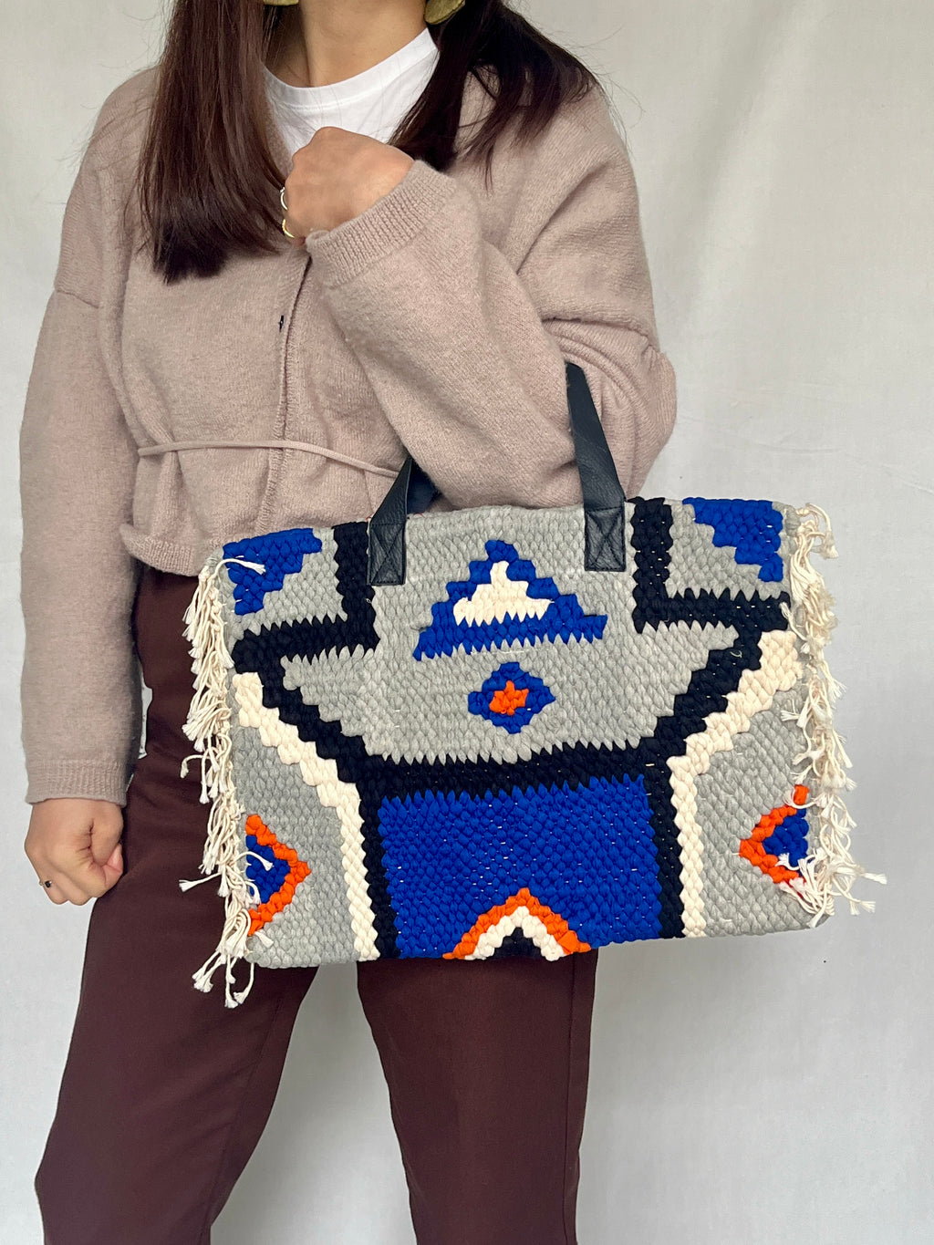 クロシェットストライプバッグ - 幾何学・ブルー&グレー -