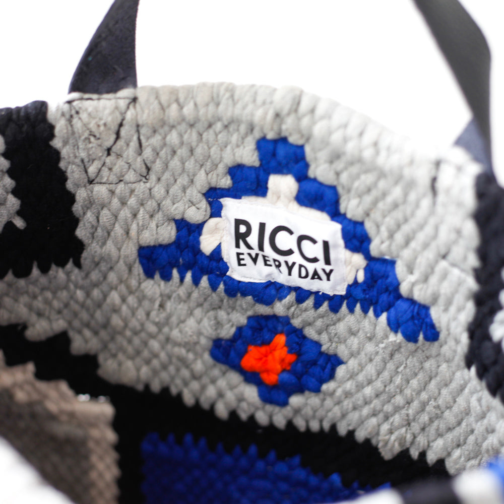 RICCI EVERYDAYのサステナブルな素材とウガンダの職人技を生かしたライン「NAWOLOVU(ナウォロブ)」から、Tシャツのハギレを使用して作られた、クロシェット・ストライプ・バッグです。