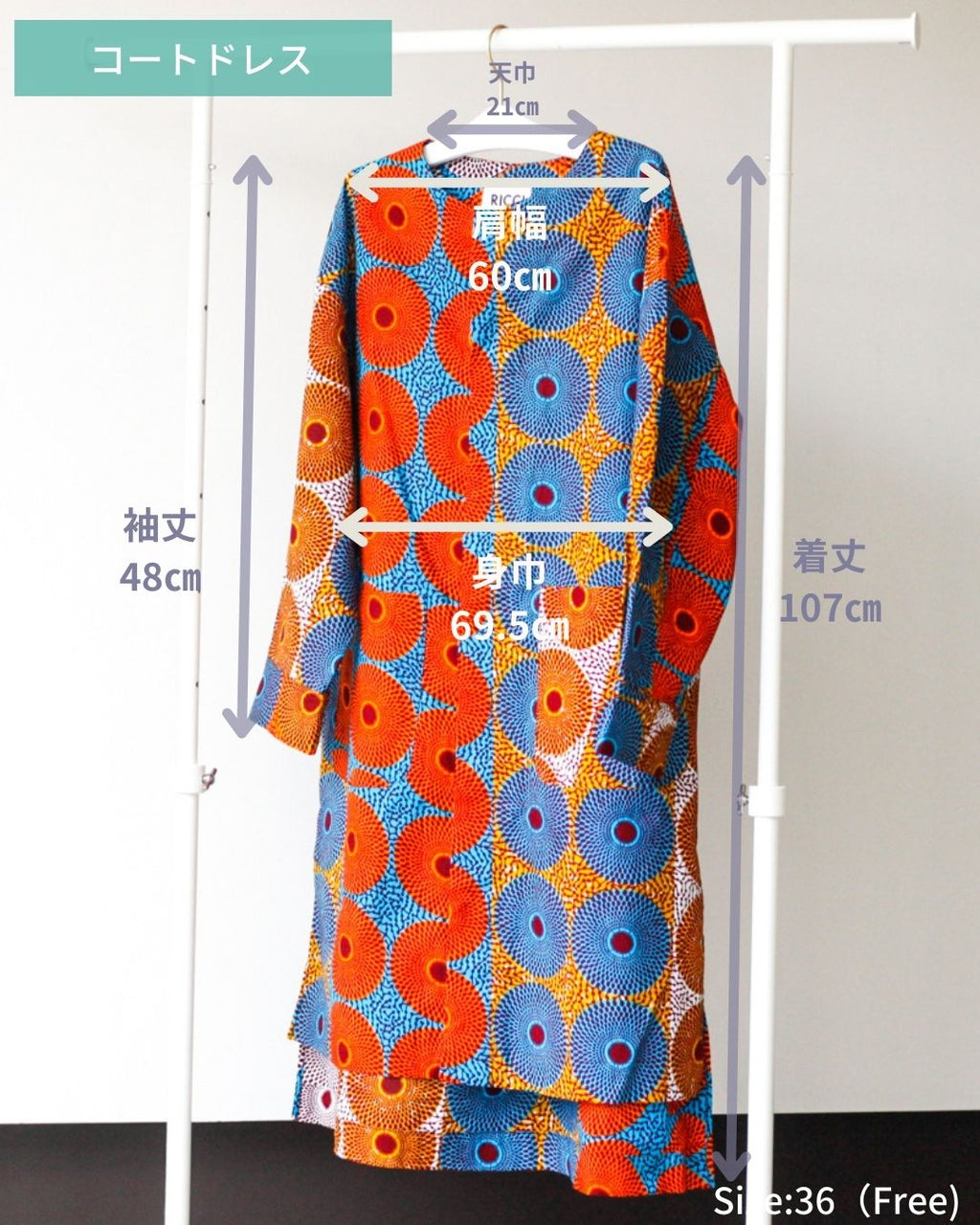 着丈107cm x 肩幅60cm x 身幅69.5cm x 袖丈48cm