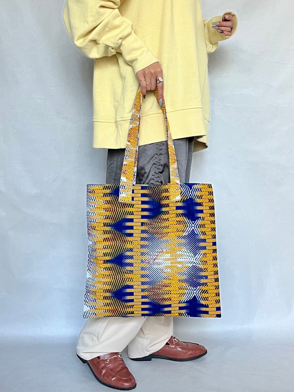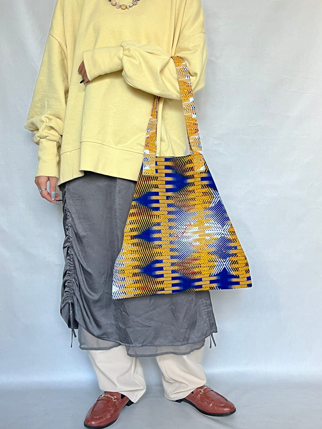 カラフルなアフリカンプリントを使用し、たっぷりと物が入る正方形のエコバッグです。