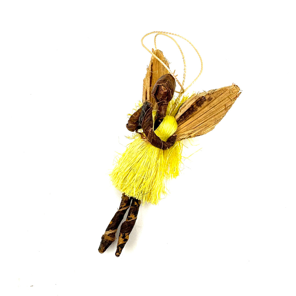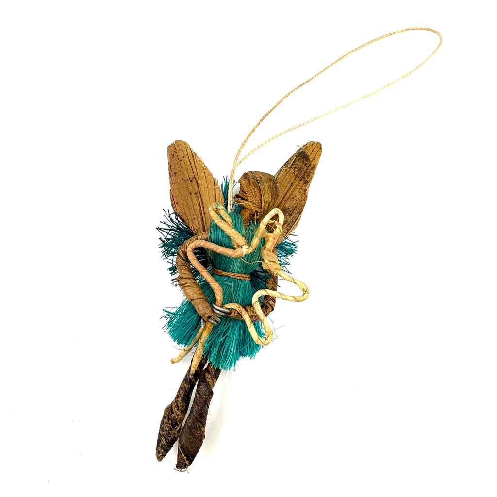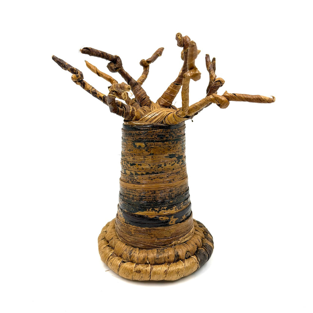 バナナファイバー、木材、プラスチックビーズ、ワイヤー、ラフィア
