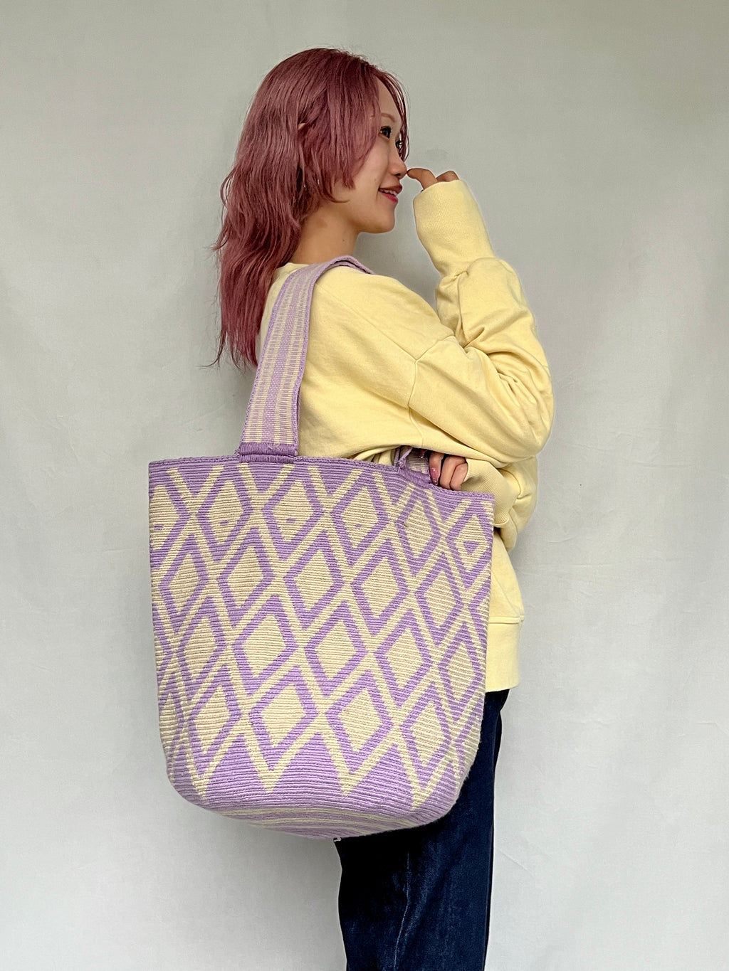 2本どり(ドスエブラス)で編まれたトートバッグ型のモチーラです。