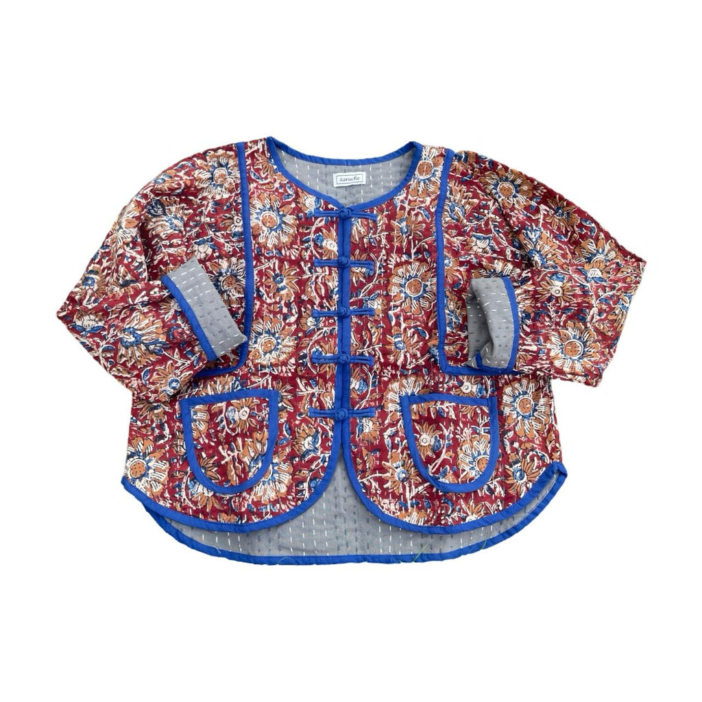 No.1【saruche】ブロックプリントカンタ80sジャケット - ブルーワイン -