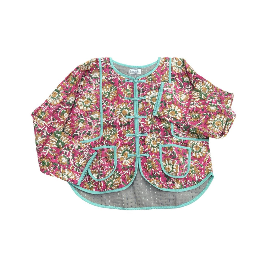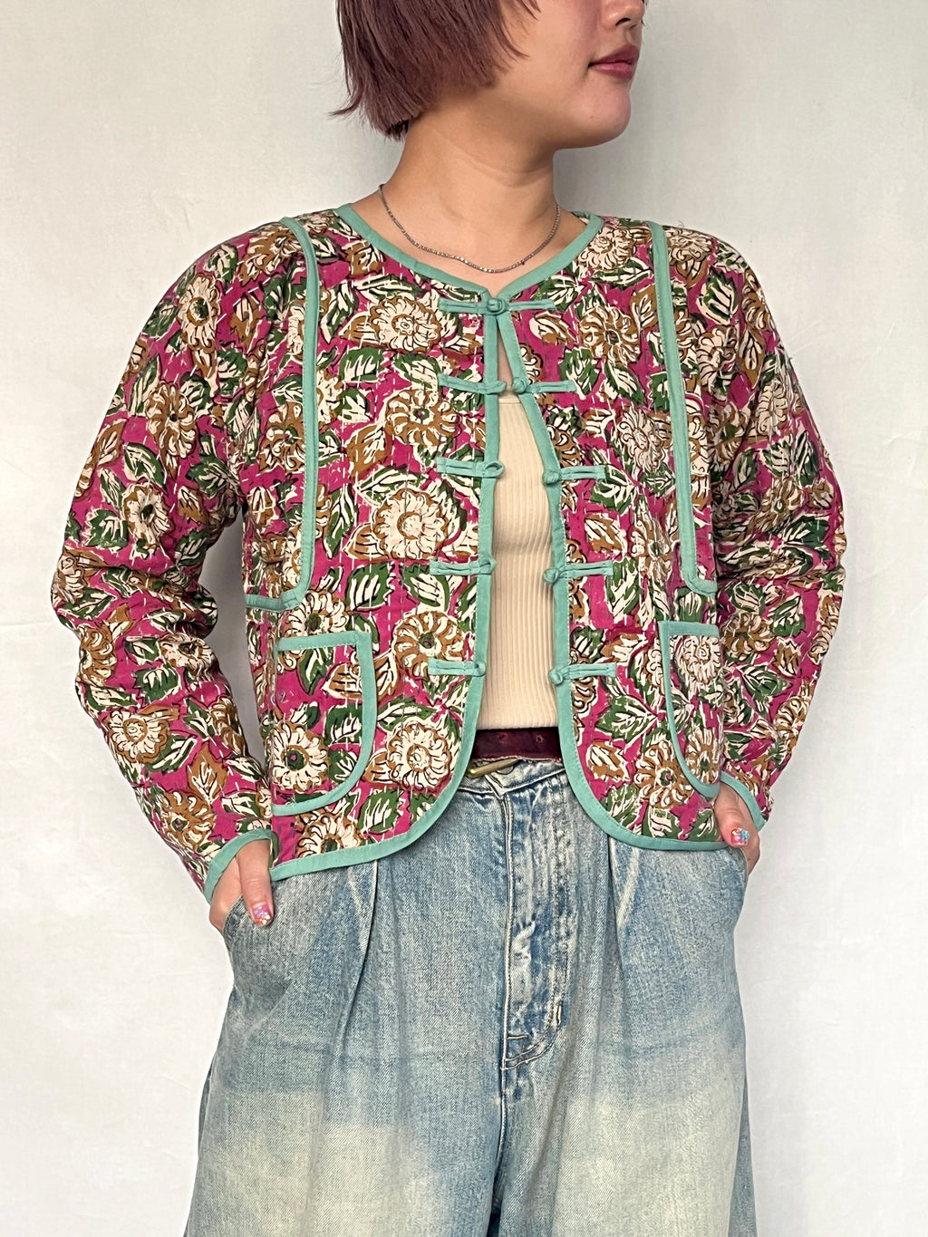 No.1【saruche】ブロックプリントカンタ80sジャケット - グリーンピンク -