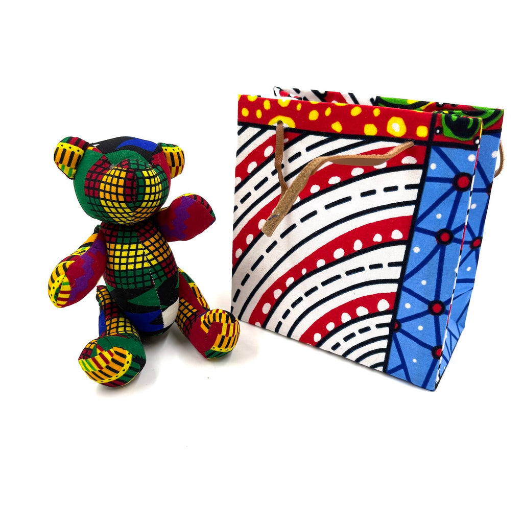 アフリカンプリント・テディベアw/ギフトバッグ - アフリカン・カーニバル -