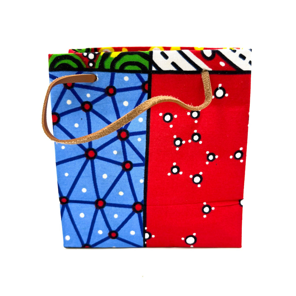 アフリカンプリントでできた、手の平サイズの可愛らしいテディベアと、ギフトバッグのセットです。