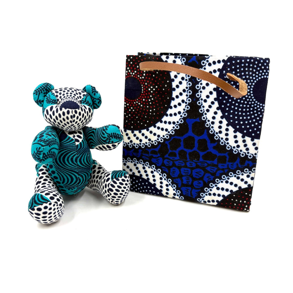 アフリカンプリント・テディベアw/ギフトバッグ - オーシャン・スピリット -