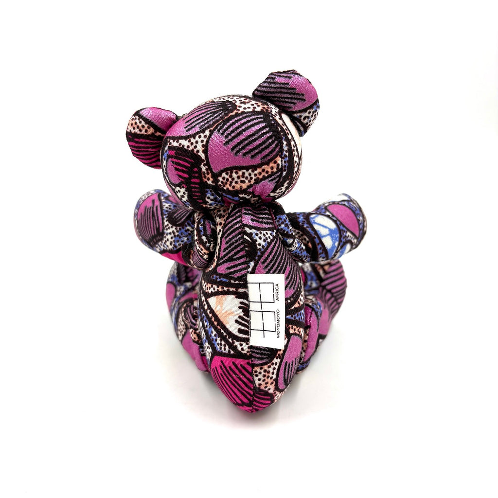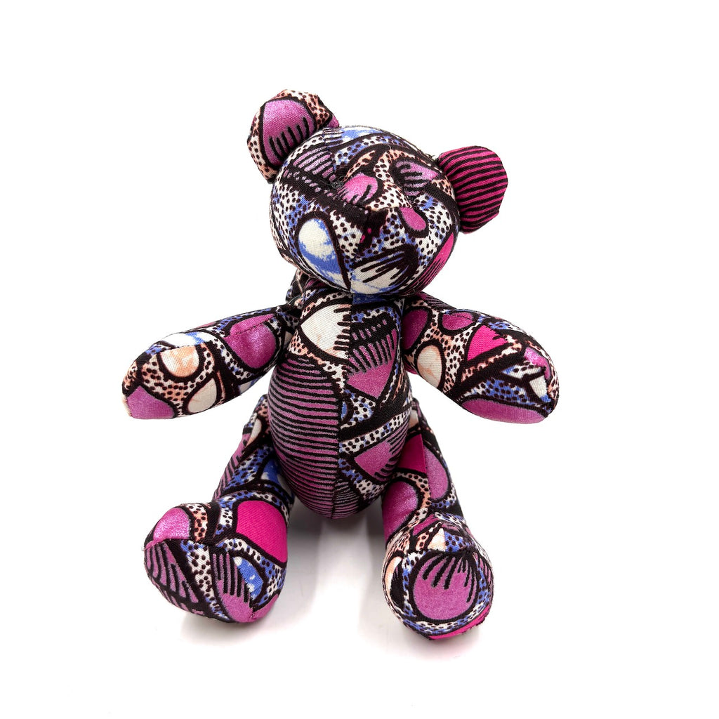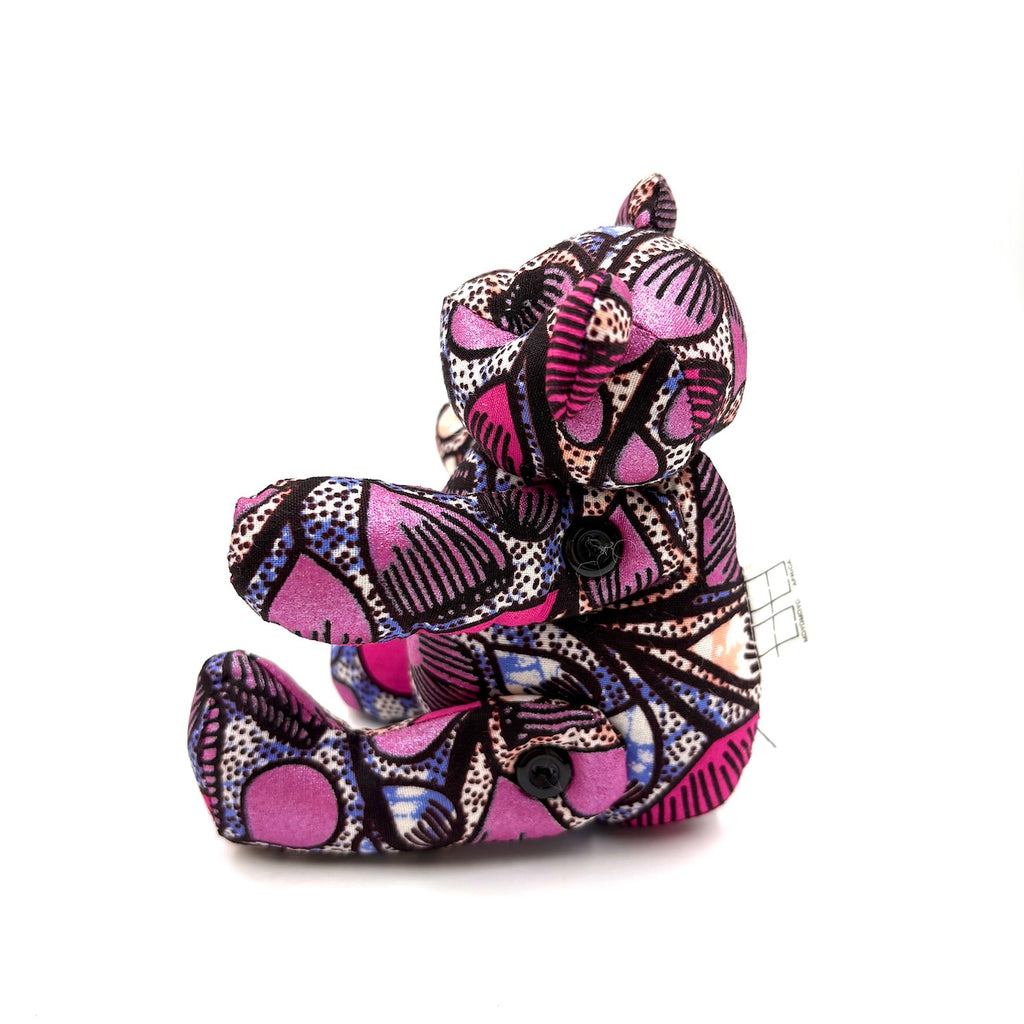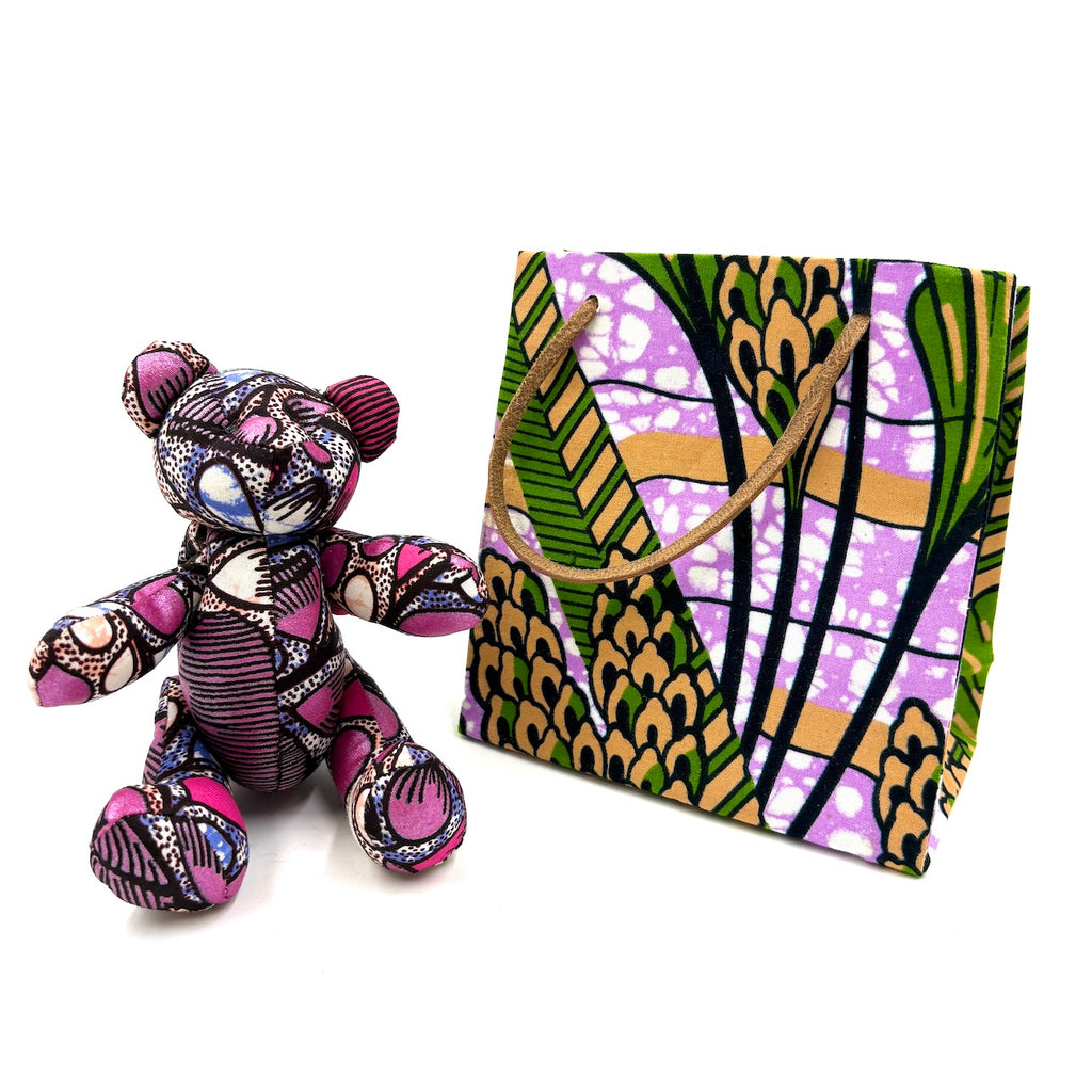 アフリカンプリント・テディベアw/ギフトバッグ - ピンク・ドリーム -