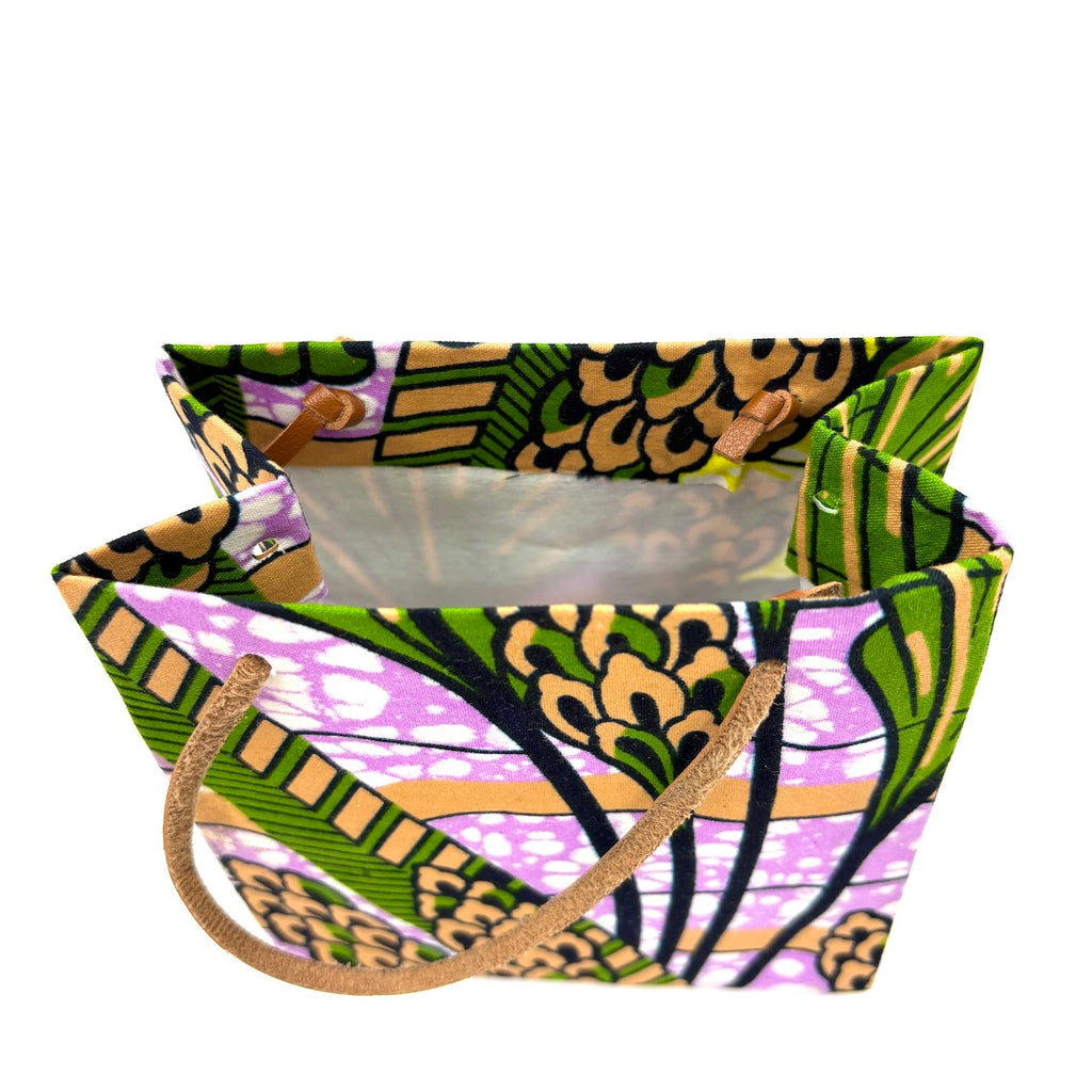 アフリカンプリントでできた、手の平サイズの可愛らしいテディベアと、ギフトバッグのセットです。