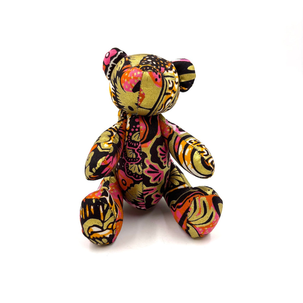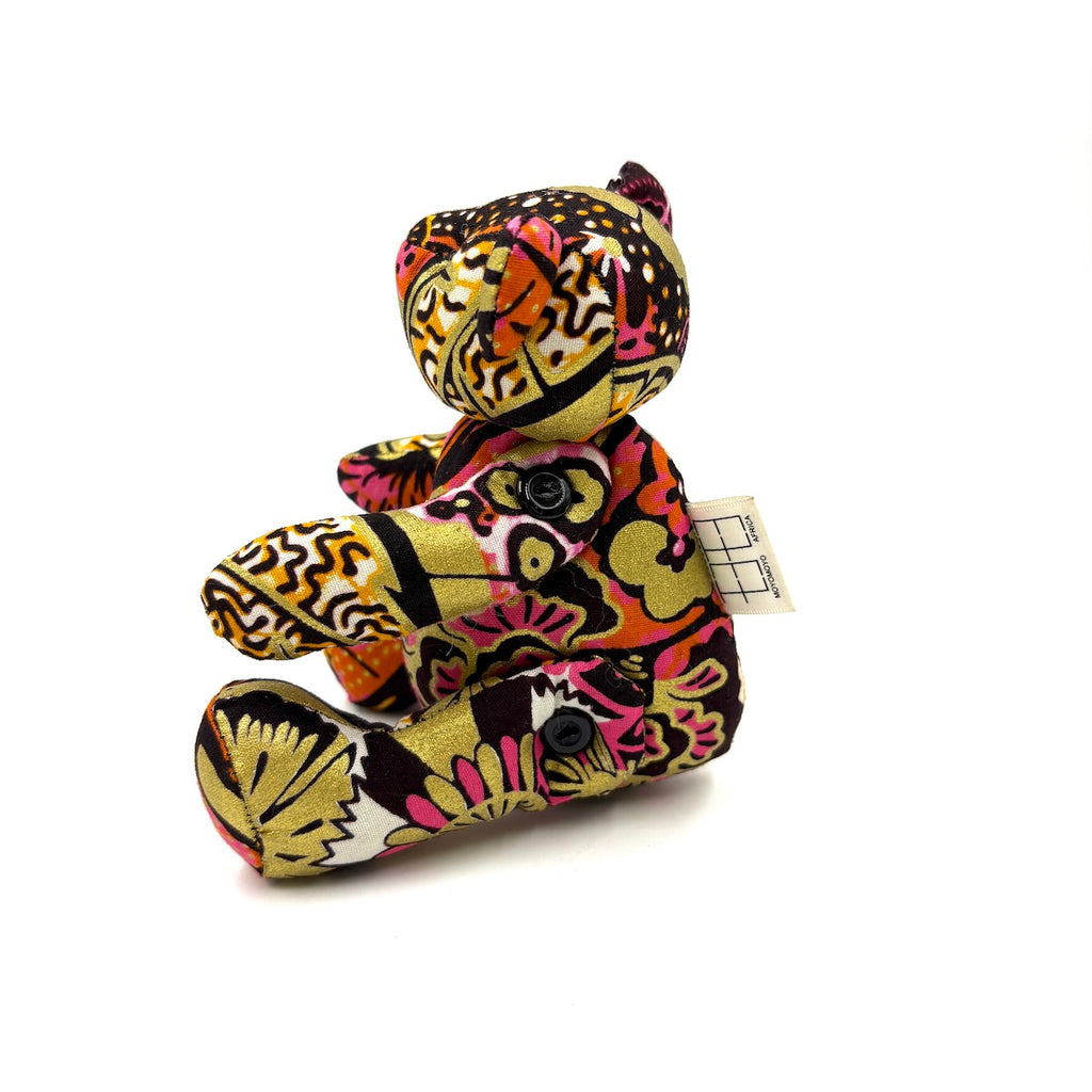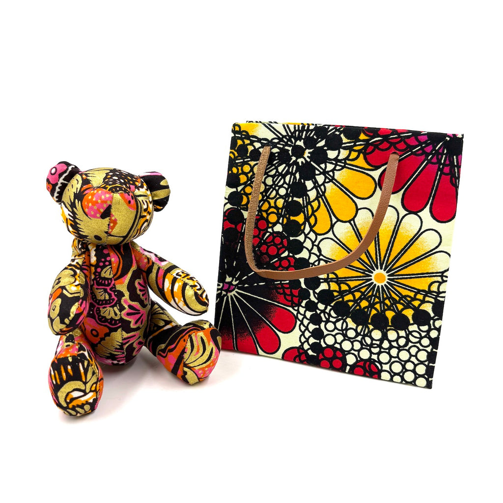 アフリカンプリント・テディベアw/ギフトバッグ - ローズ・サークル -
