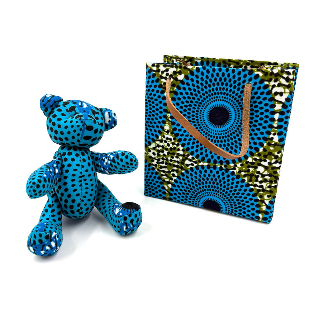 アフリカンプリント・テディベアw/ギフトバッグ - スカイ・ポップ -