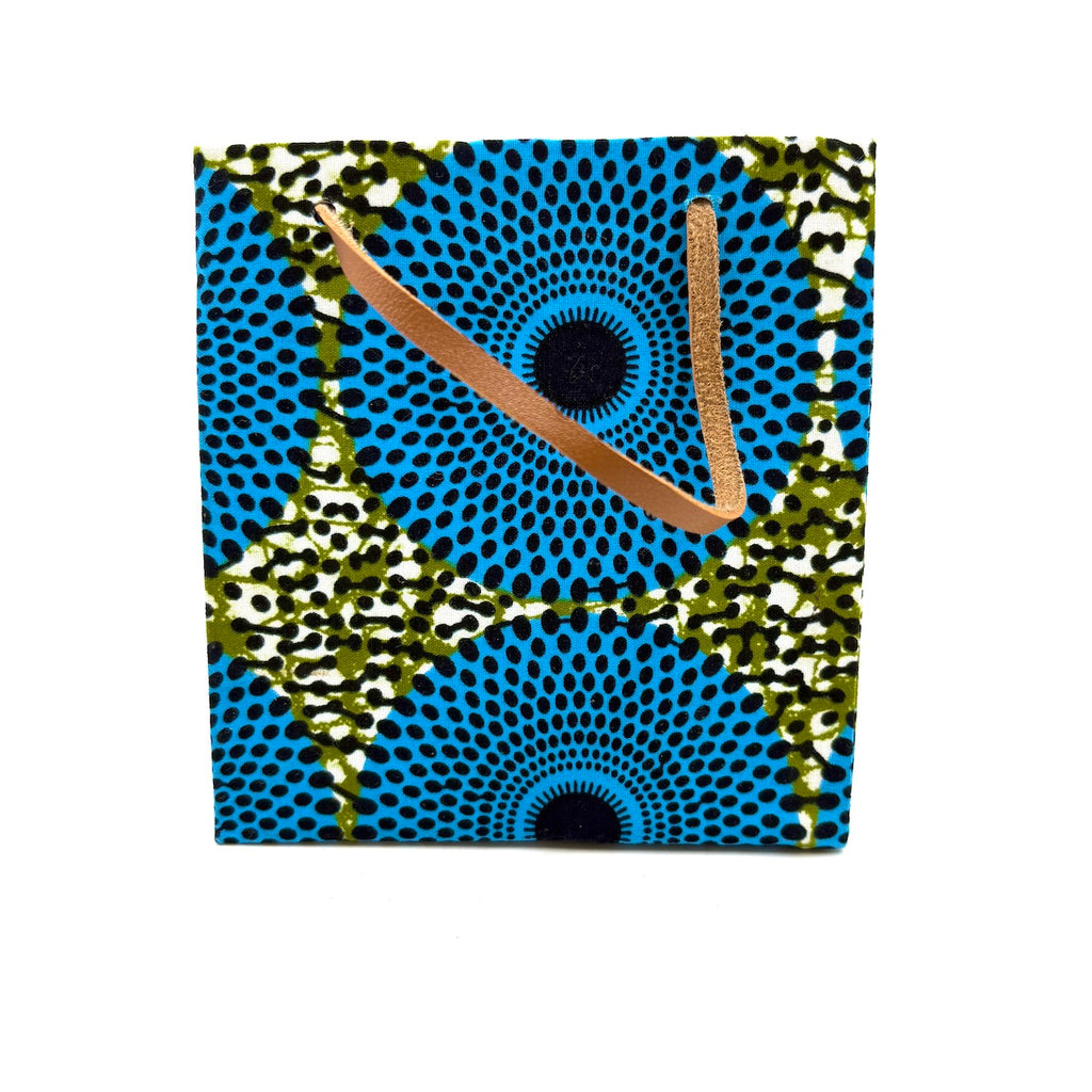 アフリカンプリントでできた、手の平サイズの可愛らしいテディベアと、ギフトバッグのセットです。