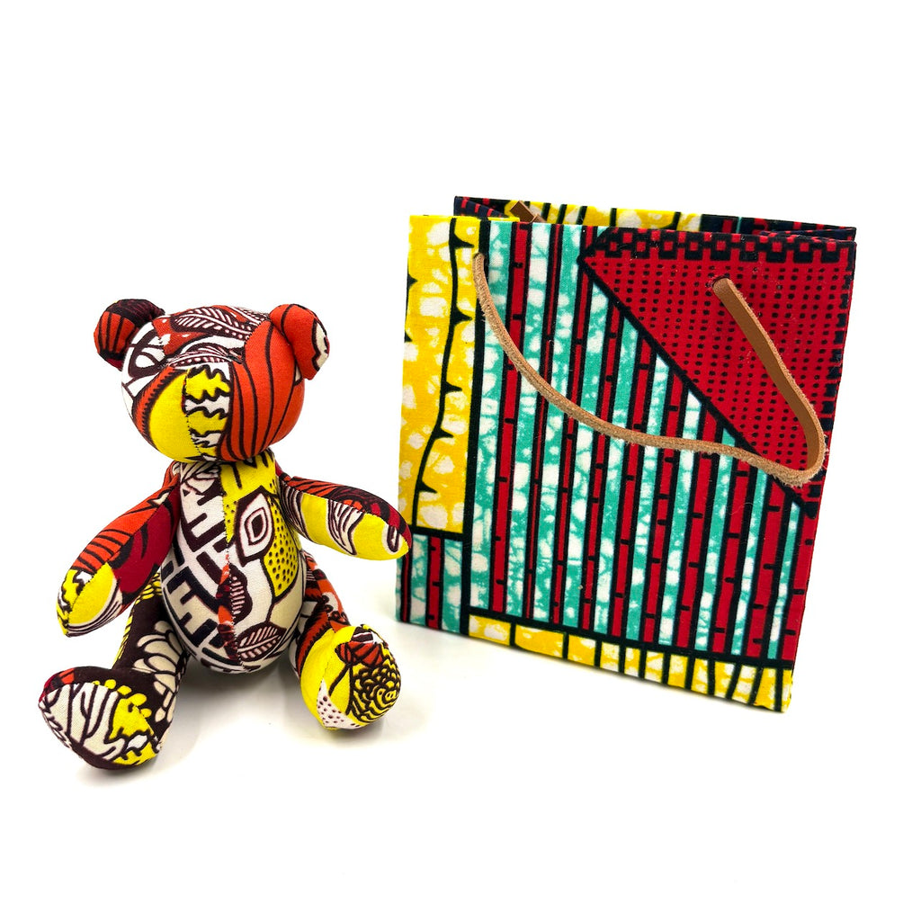 アフリカンプリント・テディベアw/ギフトバッグ - サンセット・トライブ -