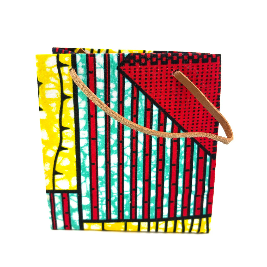 アフリカンプリントでできた、手の平サイズの可愛らしいテディベアと、ギフトバッグのセットです。