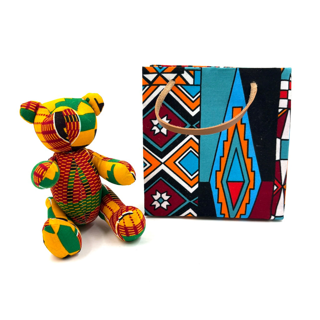 アフリカンプリント・テディベアw/ギフトバッグ - サンシャイン・モザイク -