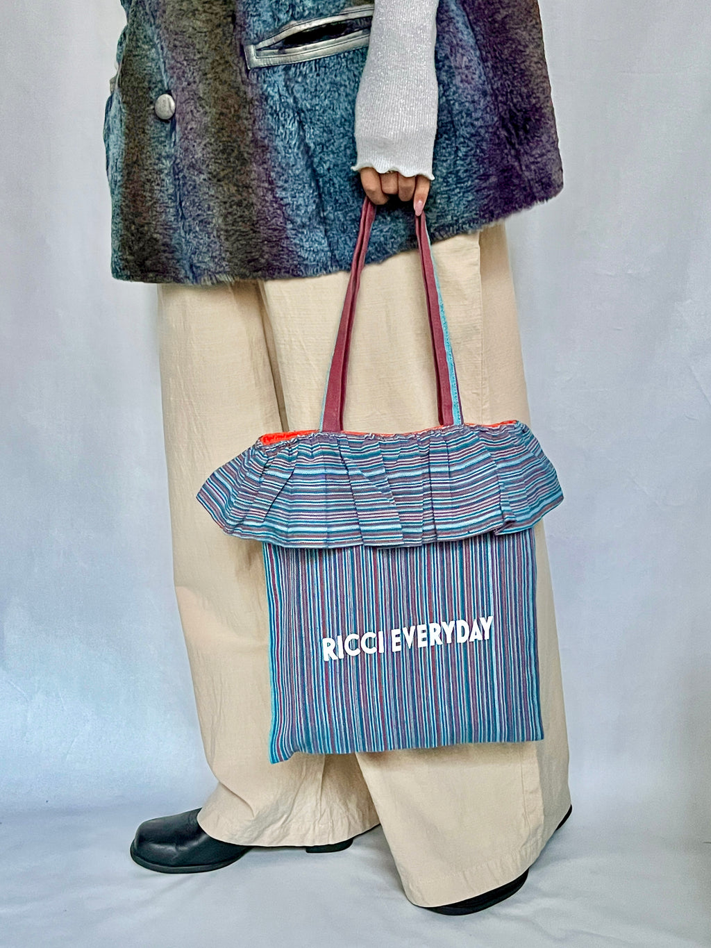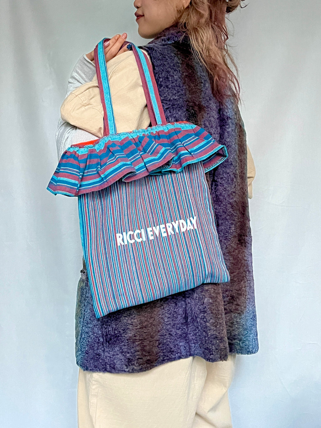 ・ It is a cute tote bag with a colorful striped pattern of Kikui and a large frill.