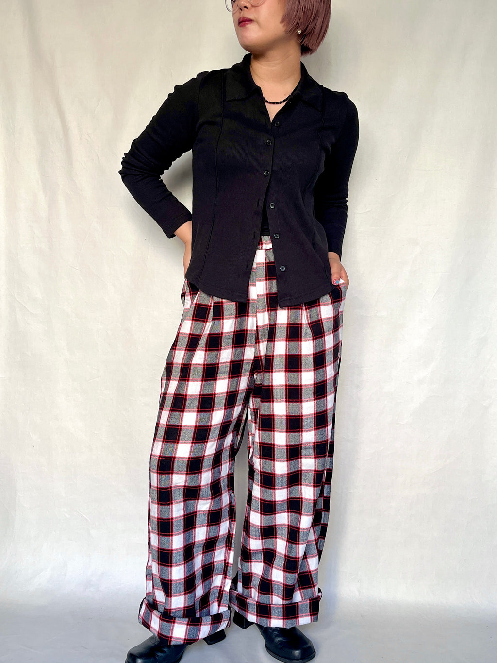リラックス・ワイド・パンツ- マサイシュカ - - ブラック&ホワイト -