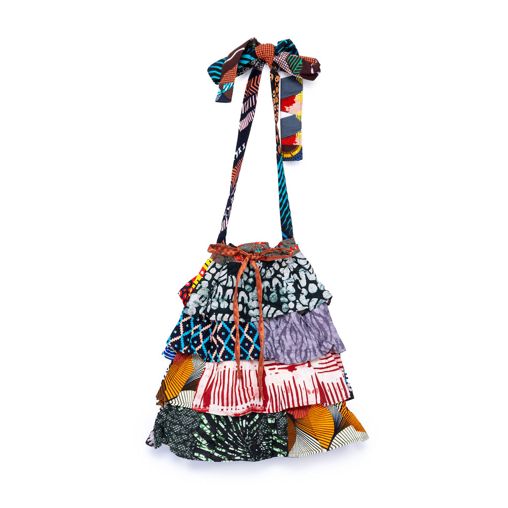 ウガンダ工房にて製品生産で出たハギレを使用しており、どの柄のハギレを使用するかによって、色合いや表情が変わります。その時々にあるハギレで制作しているため、どれひとつとして同じものはなく、ひとつひとつが違う表情を見せる、まさにオリジナルのバッグです。