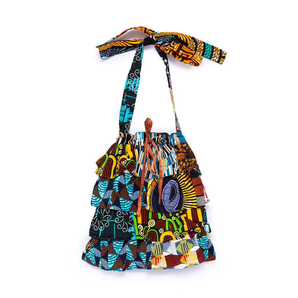 ウガンダ工房にて製品生産で出たハギレを使用しており、どの柄のハギレを使用するかによって、色合いや表情が変わります。その時々にあるハギレで制作しているため、どれひとつとして同じものはなく、ひとつひとつが違う表情を見せる、まさにオリジナルのバッグです。
