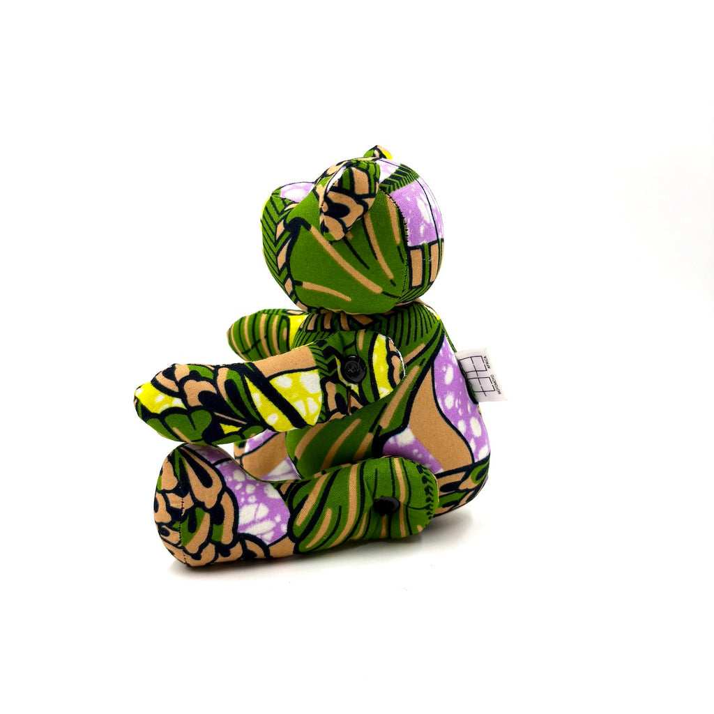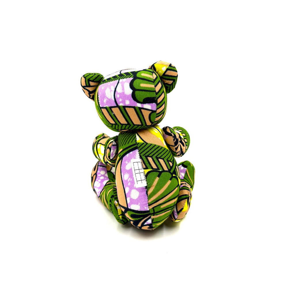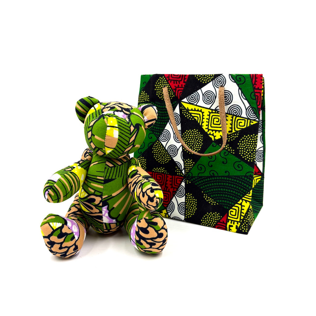アフリカンプリントでできたテディベアとギフトバッグのセットです。