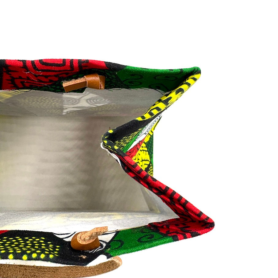 アフリカンプリントでできている点も、見てパッと気持ちが明るくなるアイテムです。