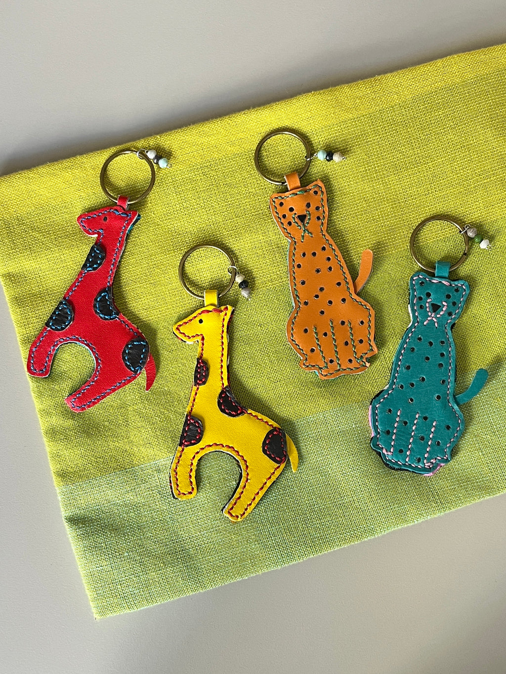 It is a leather key holder in the shape of a lovely, cheetah sitting in the savanna.