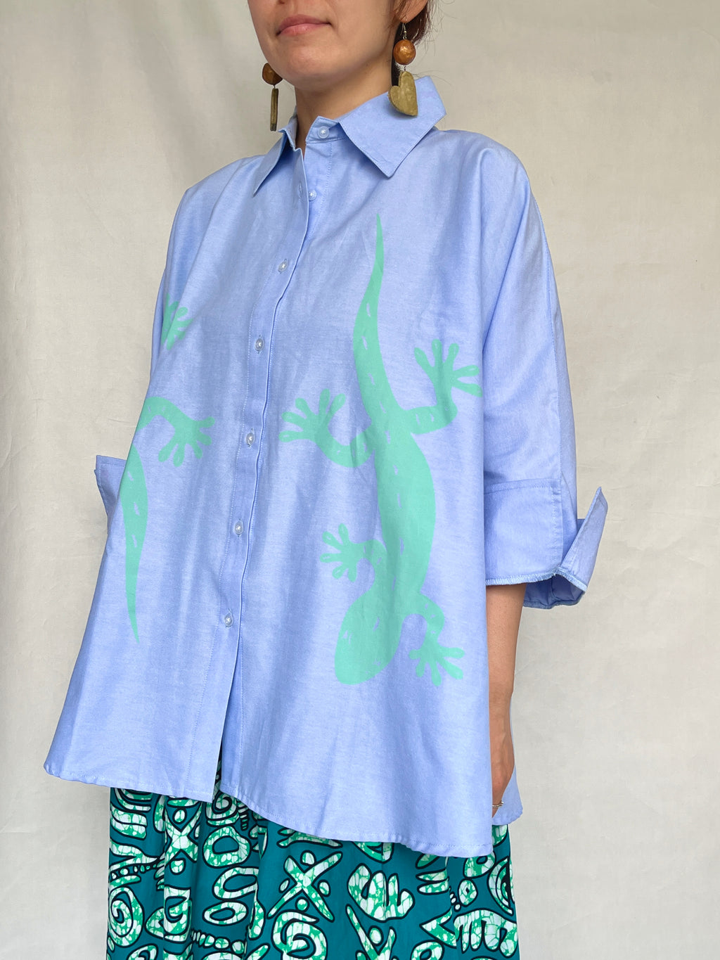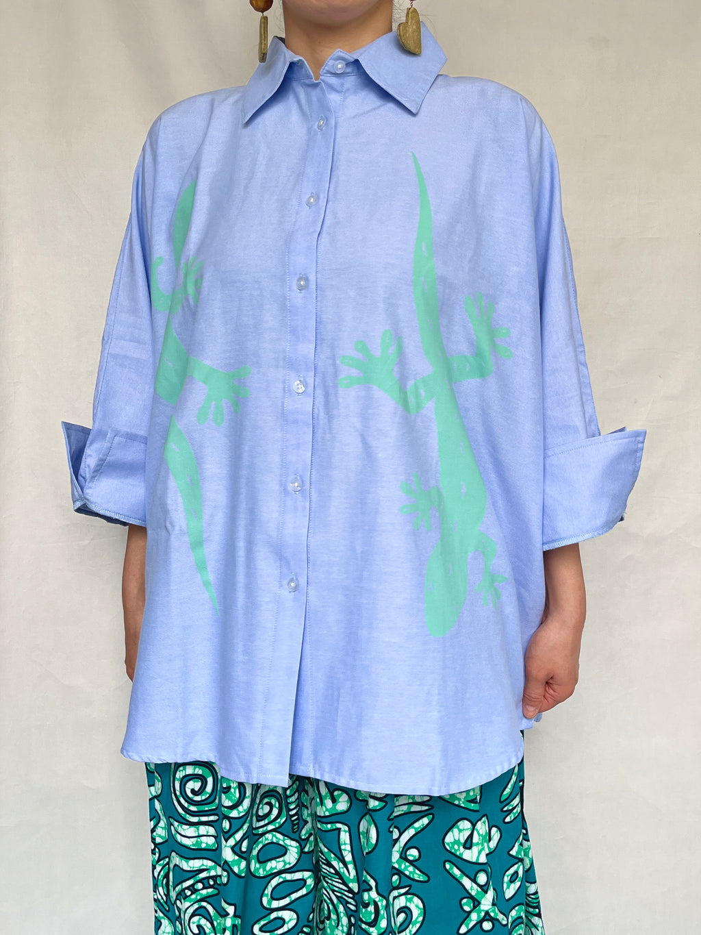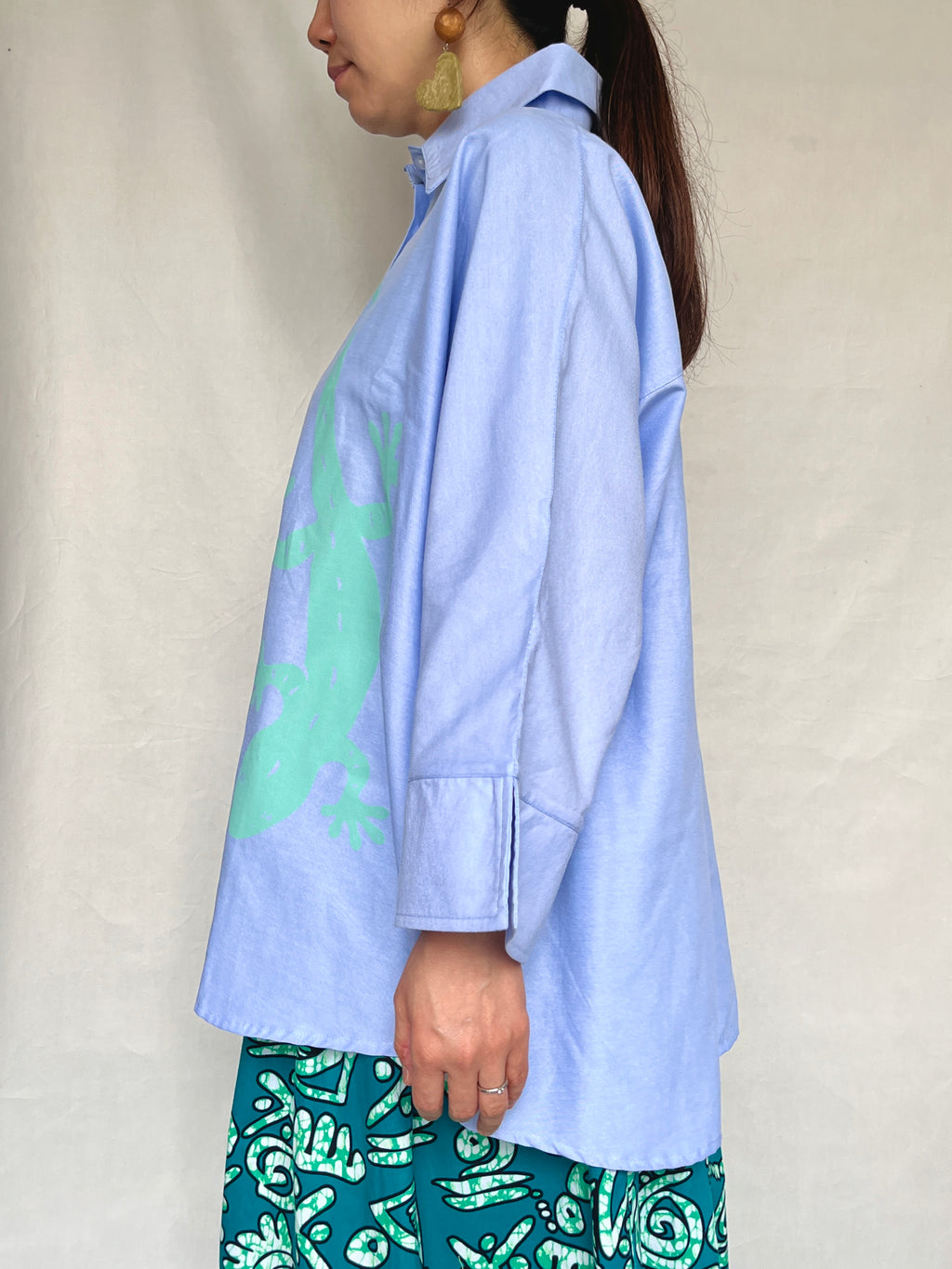 オーバーサイズシャツ - ブルーシャツ×グリーンゲッコー -