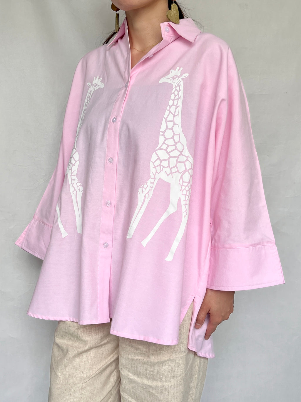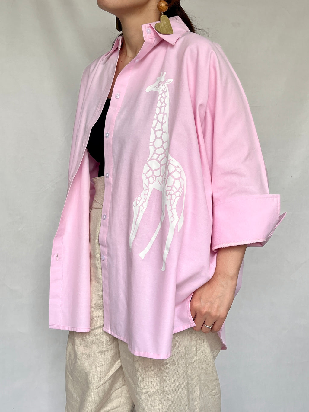 オーバーサイズシャツ - ピンクシャツxキリン -