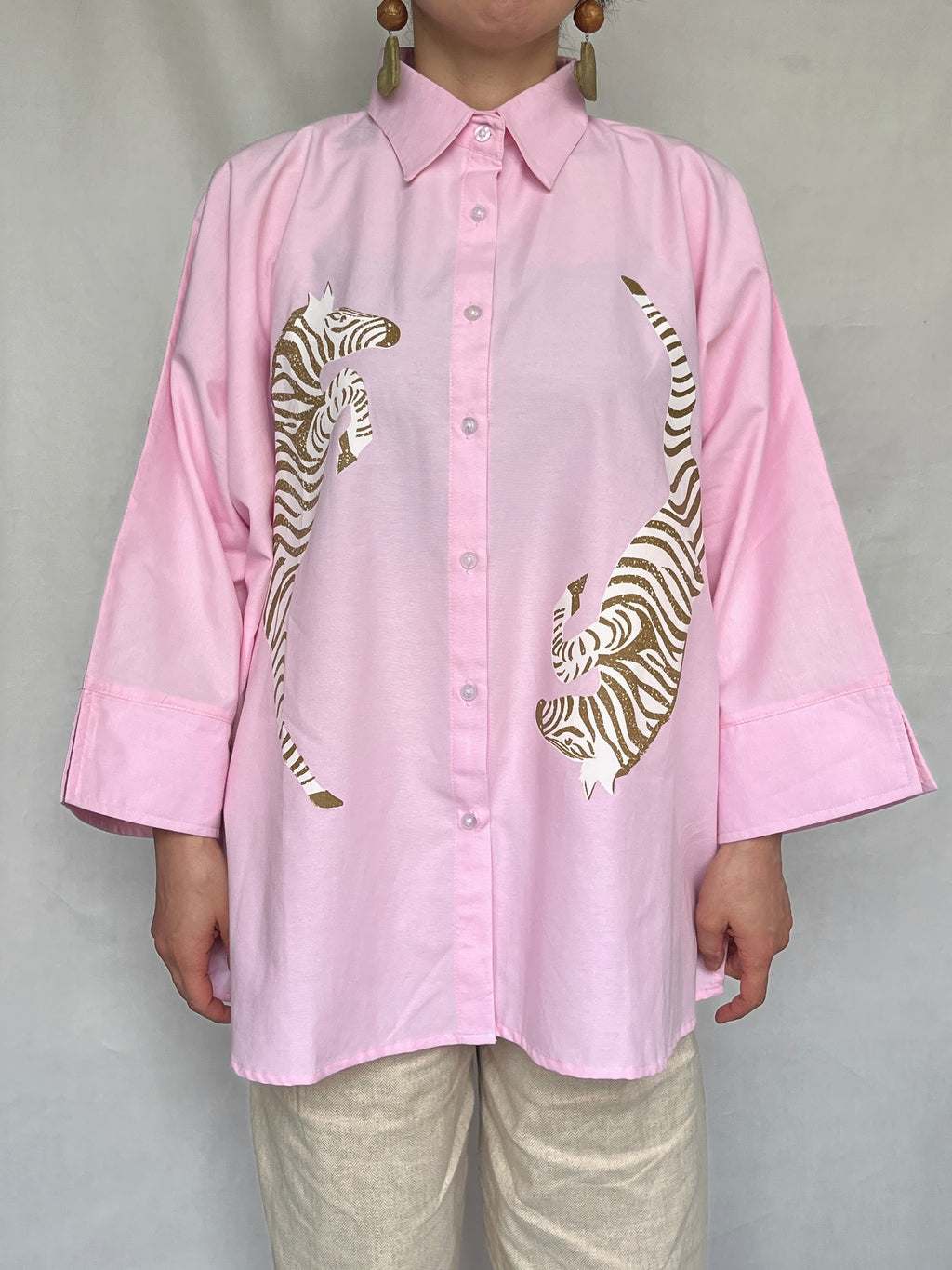 オーバーサイズシャツ - ピンクシャツxゼブラ -