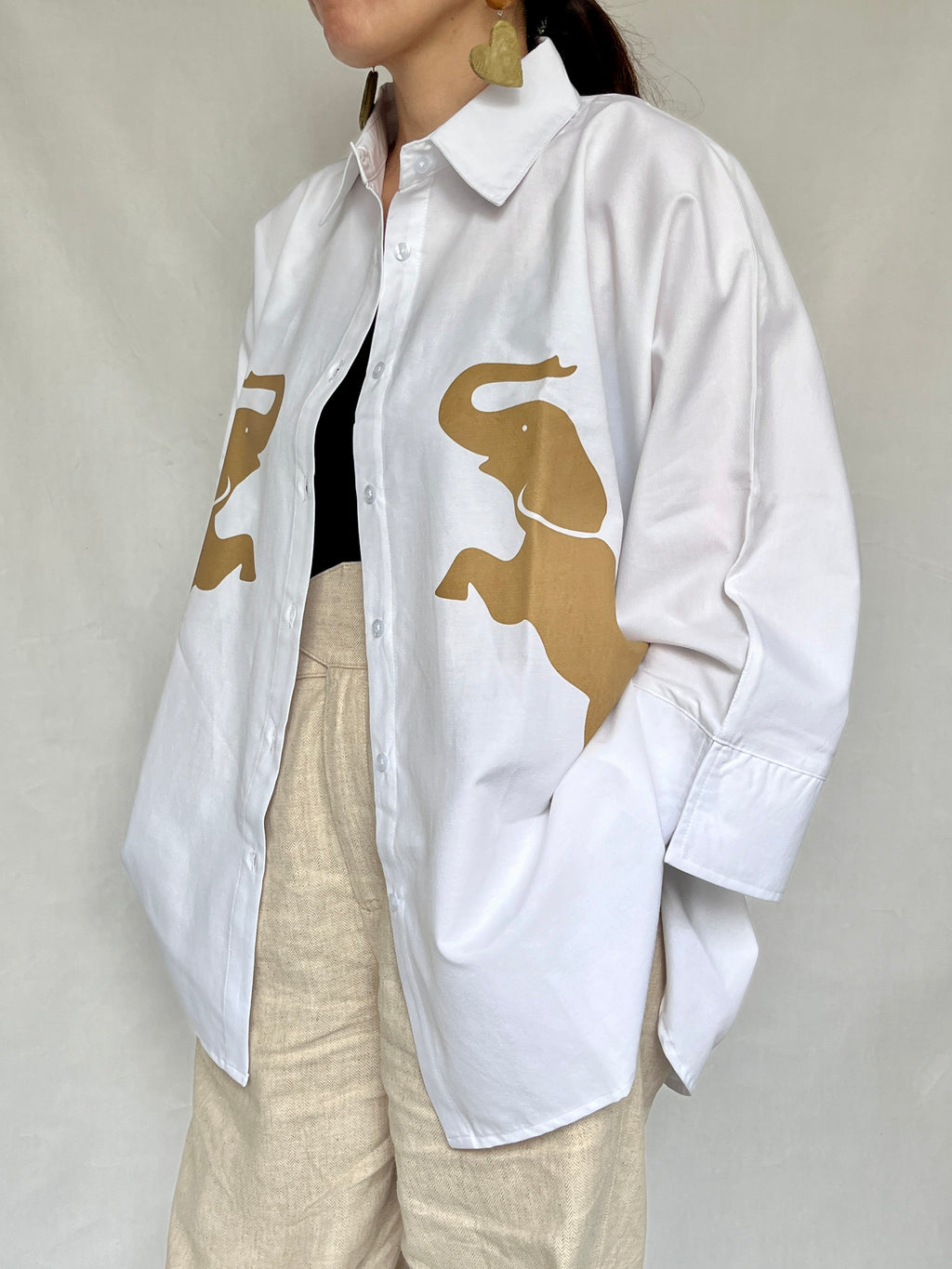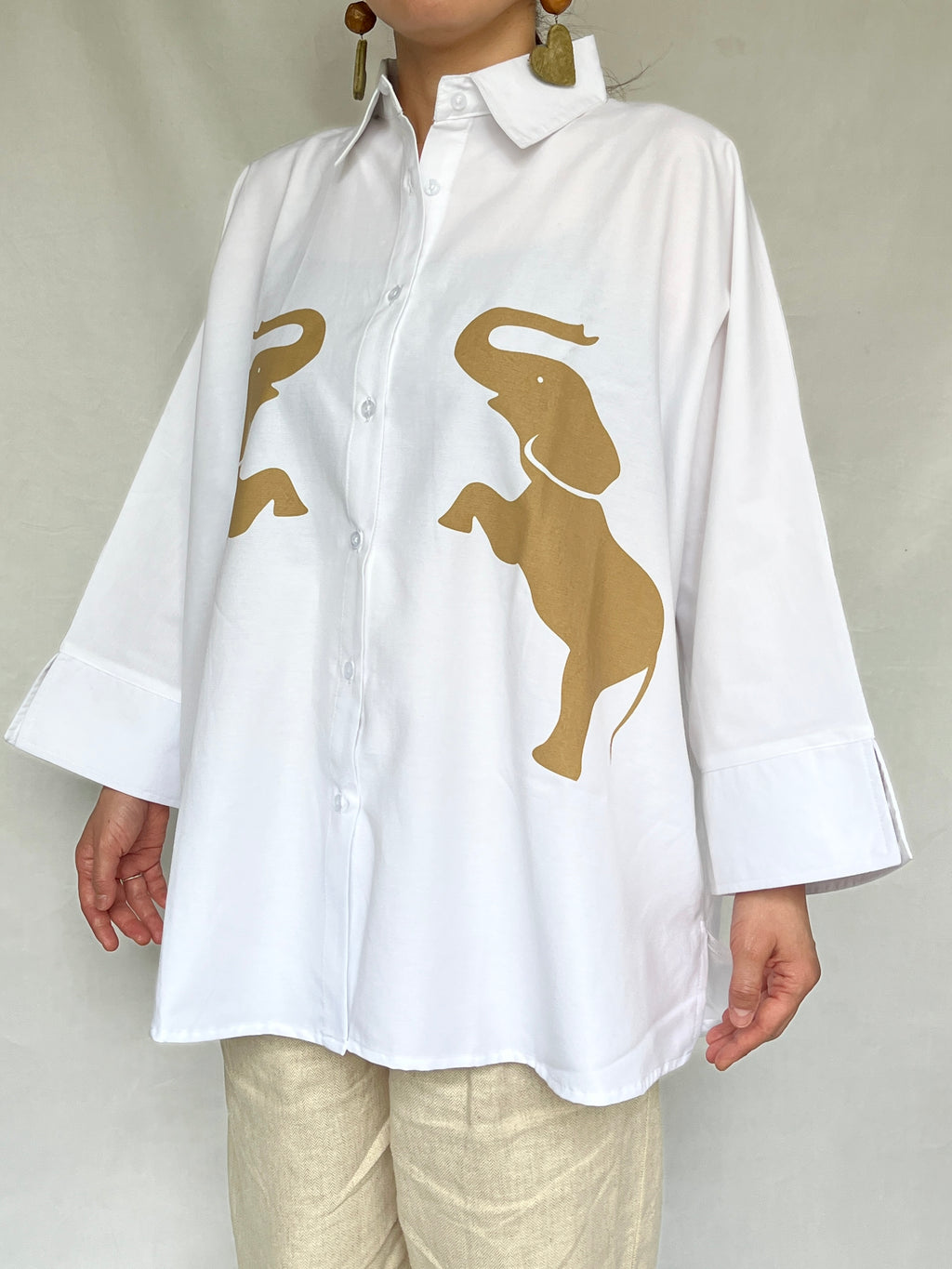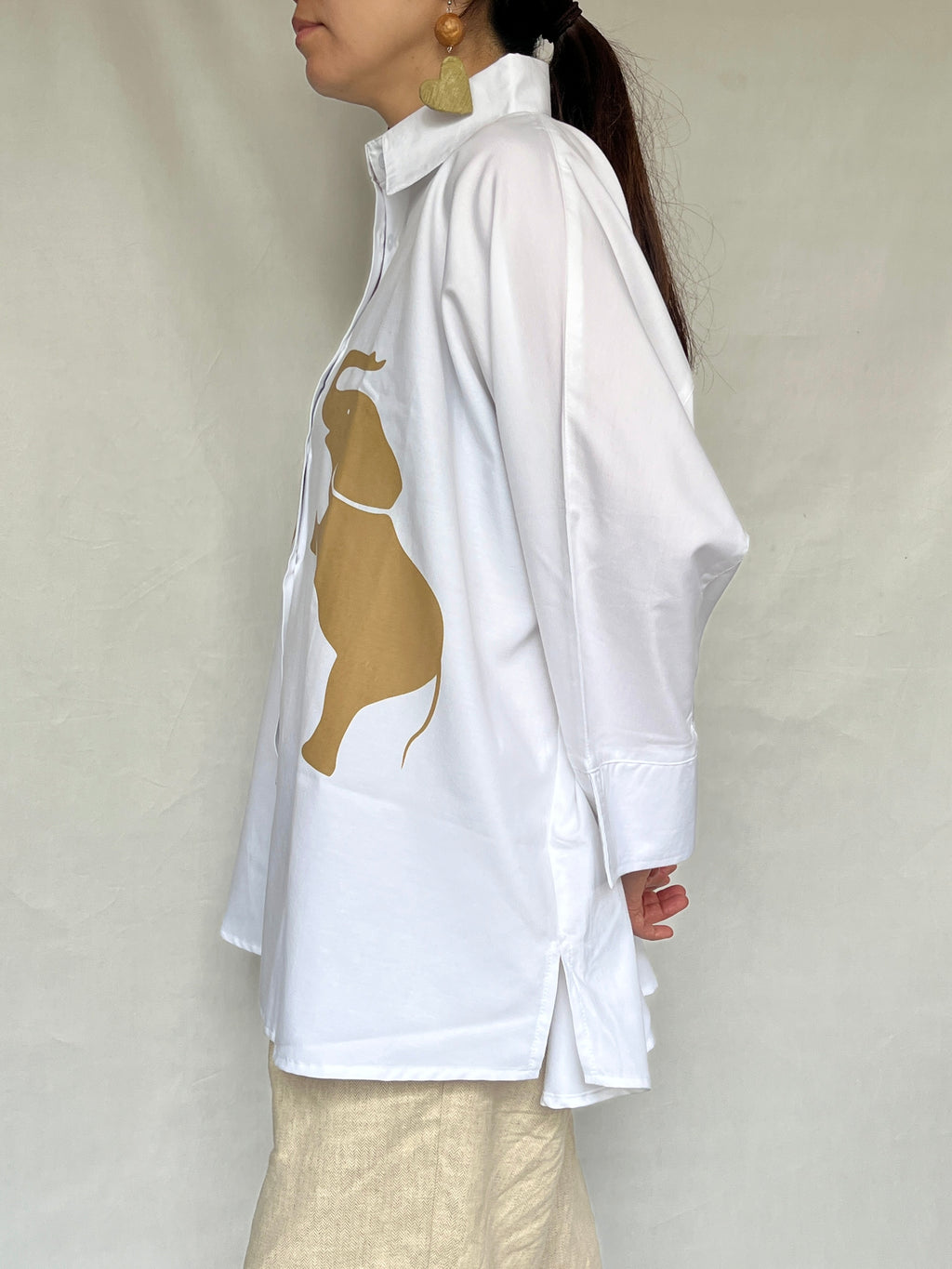 オーバーサイズシャツ - ホワイトシャツxブラウンエレファント -