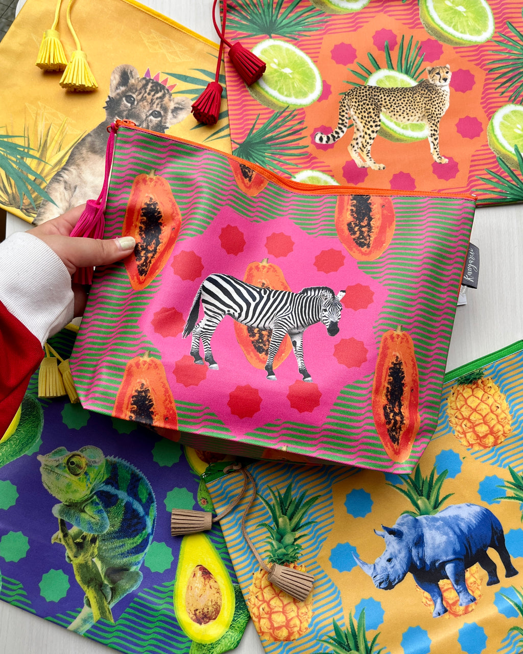 2016年、彼女はケニア・ナイロビに移住し、翌年インテリア・ファッション雑貨のブランド「Kangarui」 を設立しました。ケニアの大自然から得たインスピレーションを元に、カラフルな色彩と野生動物をメインモチーフとして使用し、デジタル加工した写真と手書きを組み合わせた彼女オリジナルのタッチで表現されています。「ケニアの素晴らしいワイルドライフを世界に知ってもらいたい!」 そんな願いを込めて、彼女は作品を生み出し続けています。
