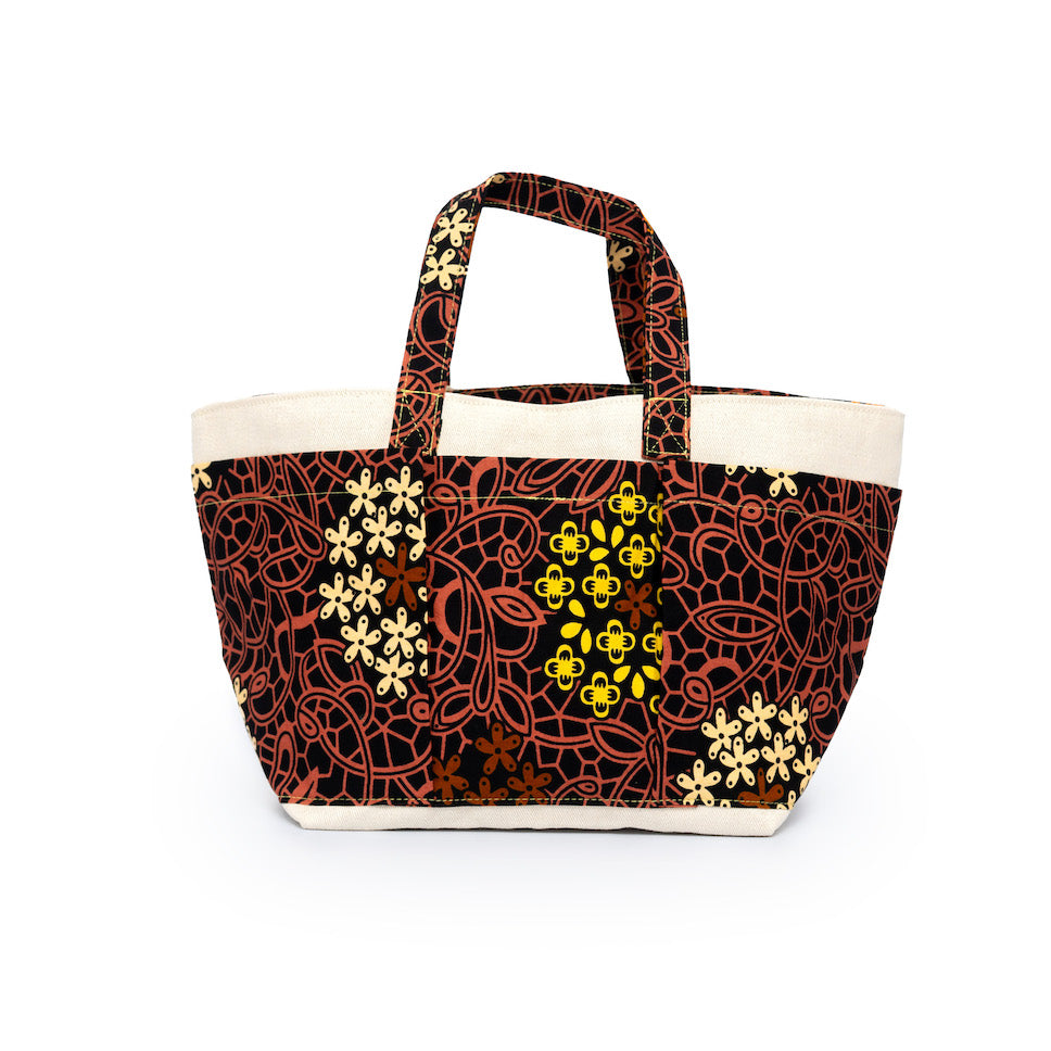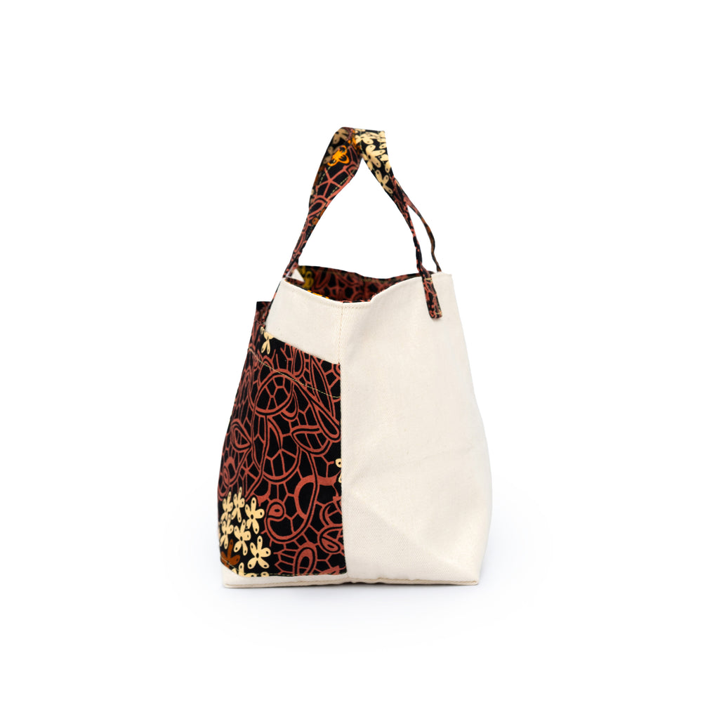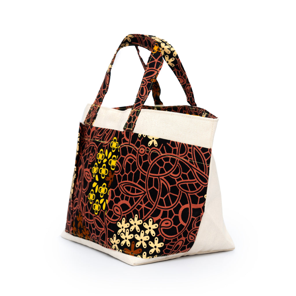 アフリカンプリントとオフホワイトのコットンを組み合わせたランチトート。