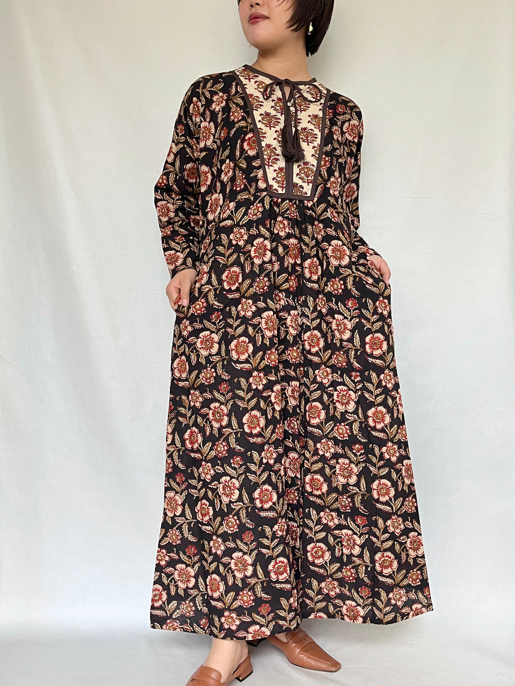 ・草木染めのブロックプリントは色落ちがしやすいため、ドライクリーニングを推奨致します。