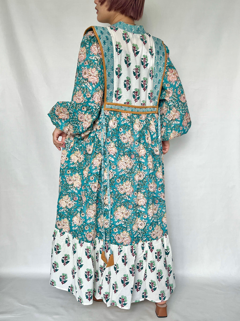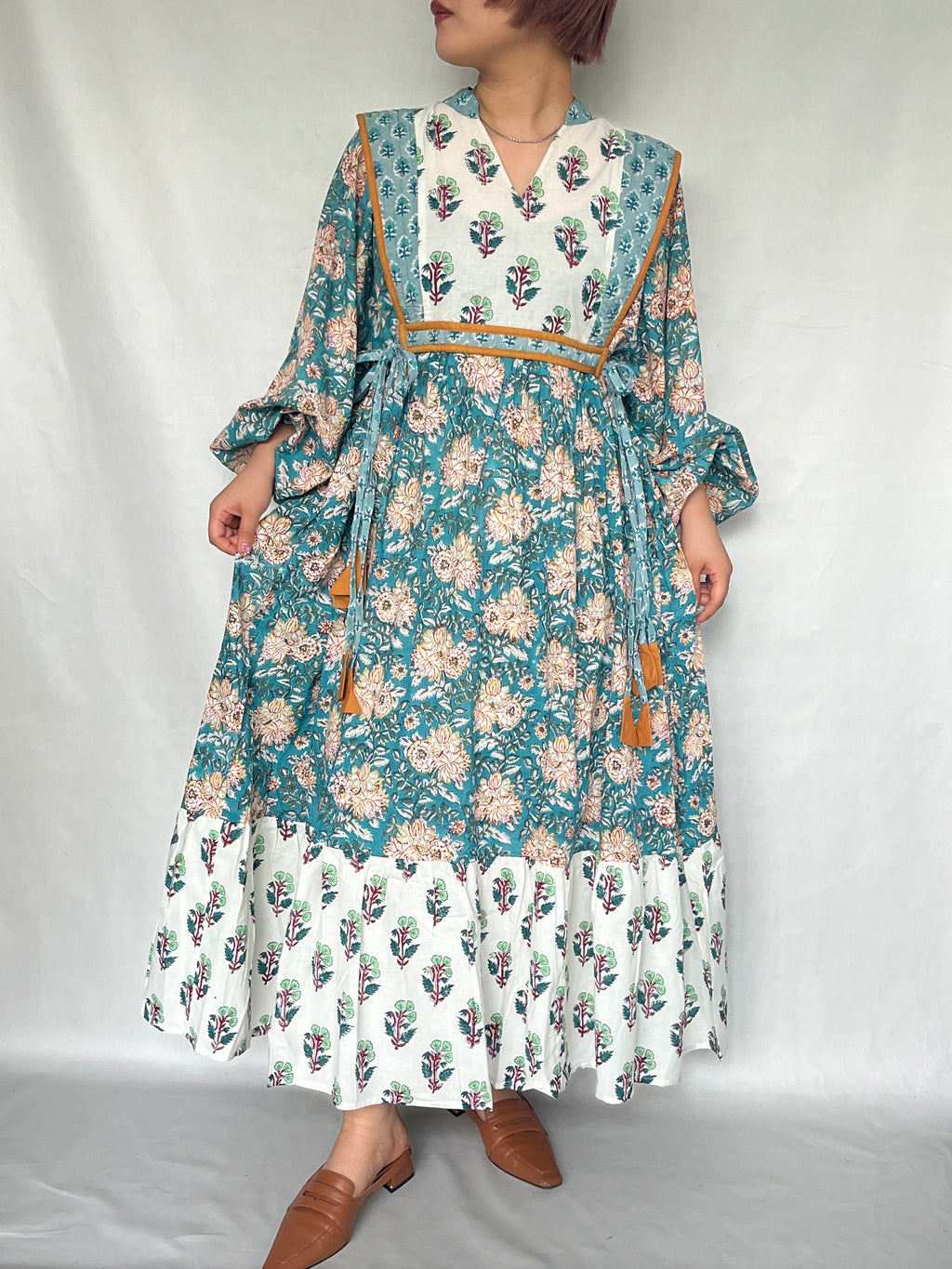 No.30【saruche】キルティングパッチサイドリボン襟付きワンピース - グリーン -