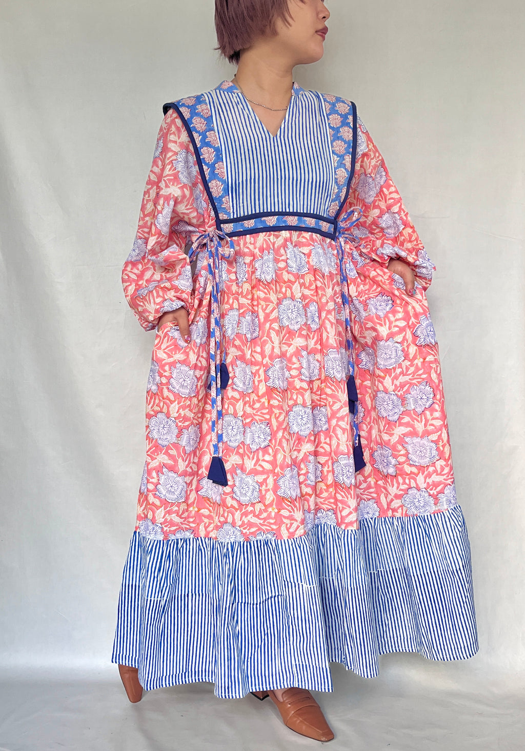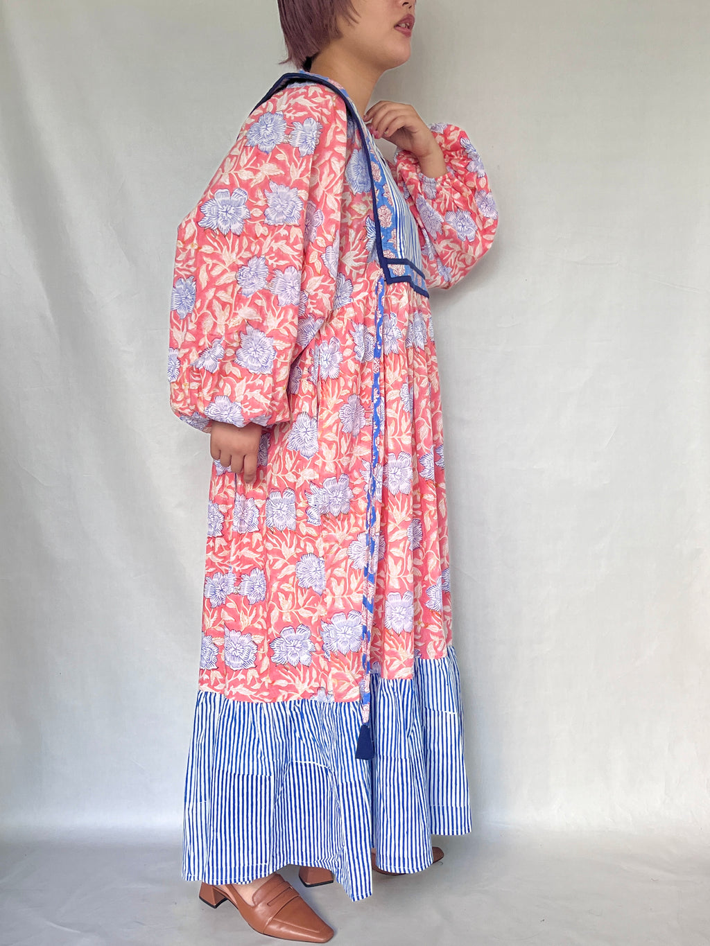 ・草木染めのブロックプリントは色落ちがしやすいため、ドライクリーニングを推奨致します。