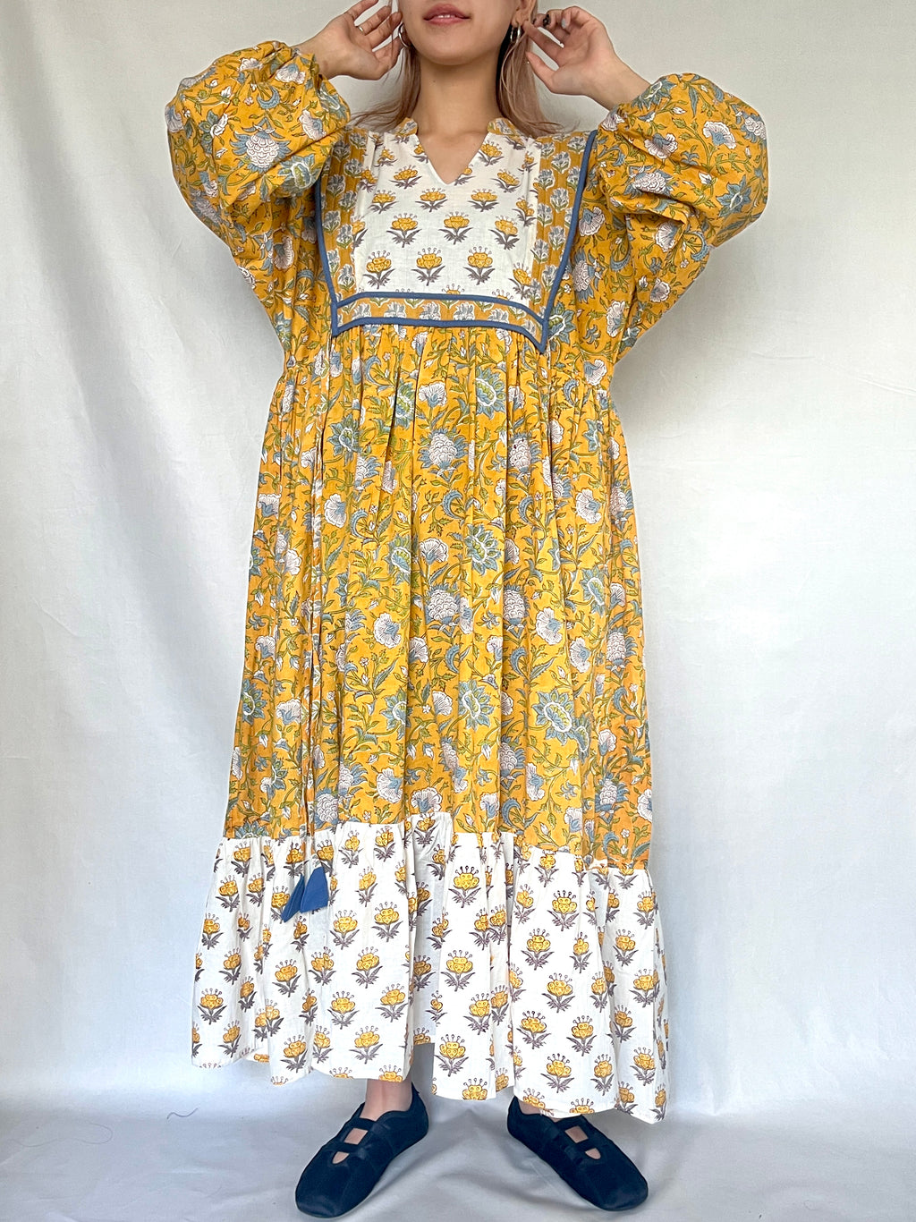 ・草木染めのブロックプリントは色落ちがしやすいため、ドライクリーニングを推奨致します。