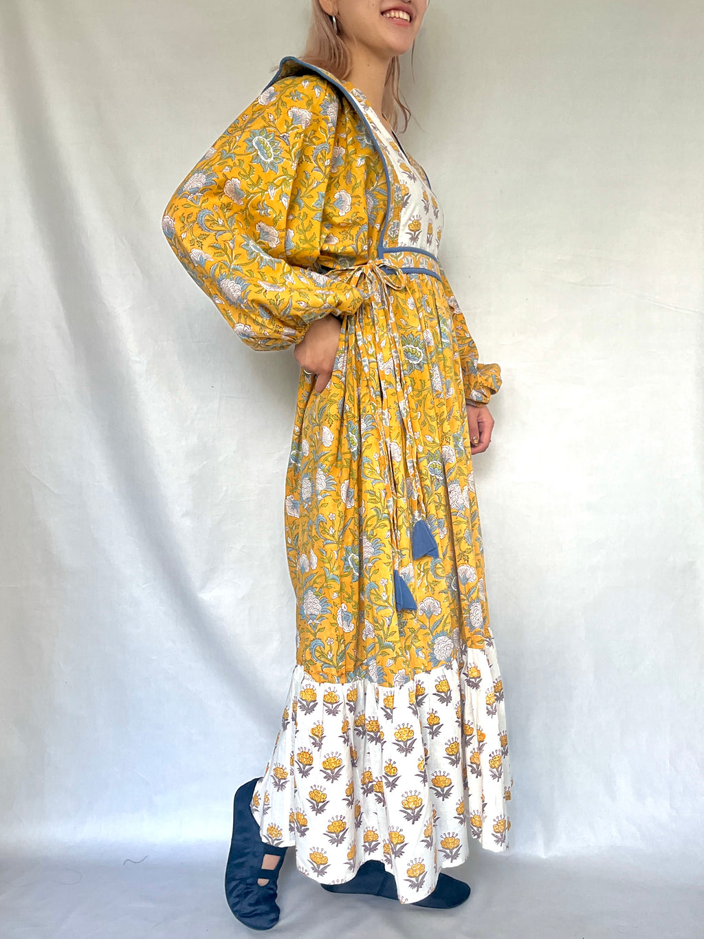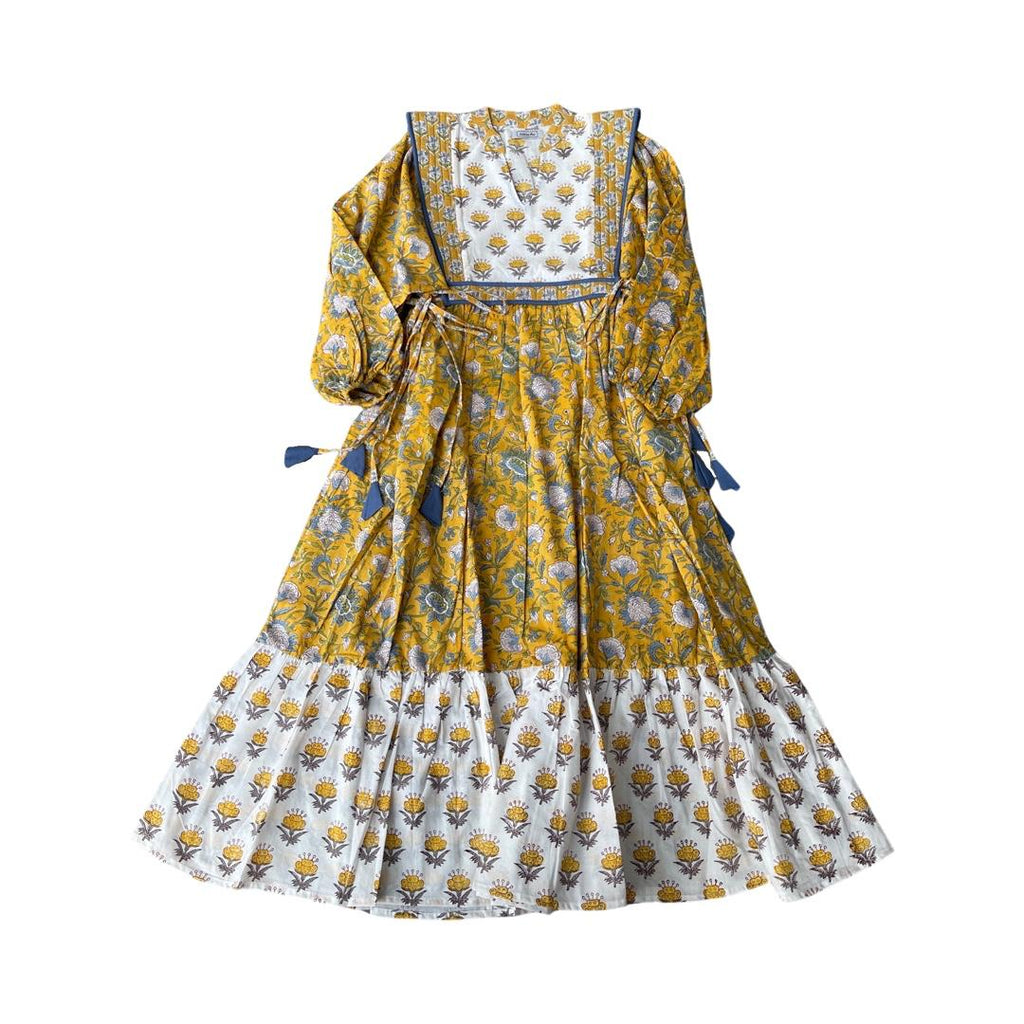 No.31【saruche】キルティングパッチサイドリボン襟付きワンピース - イエロー -