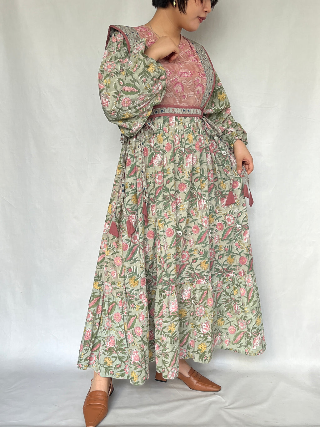 ・草木染めのブロックプリントは色落ちがしやすいため、ドライクリーニングを推奨致します。