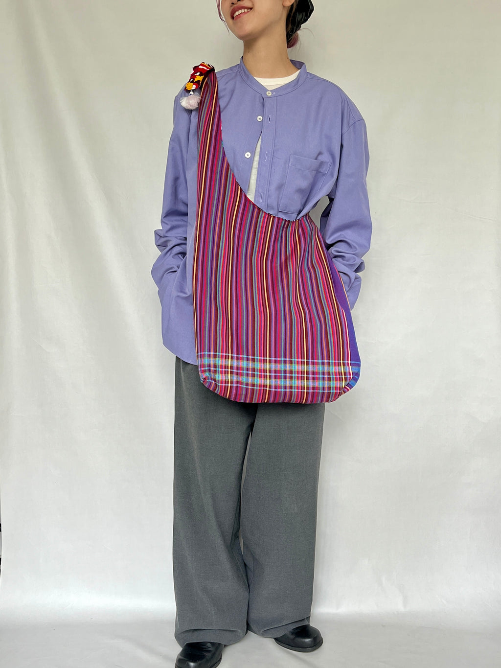 ・コーディネートにあわせて、アフリカンプリント柄を表にしたり、キコイを表にしたりと、気分に合わせて変えることができます。