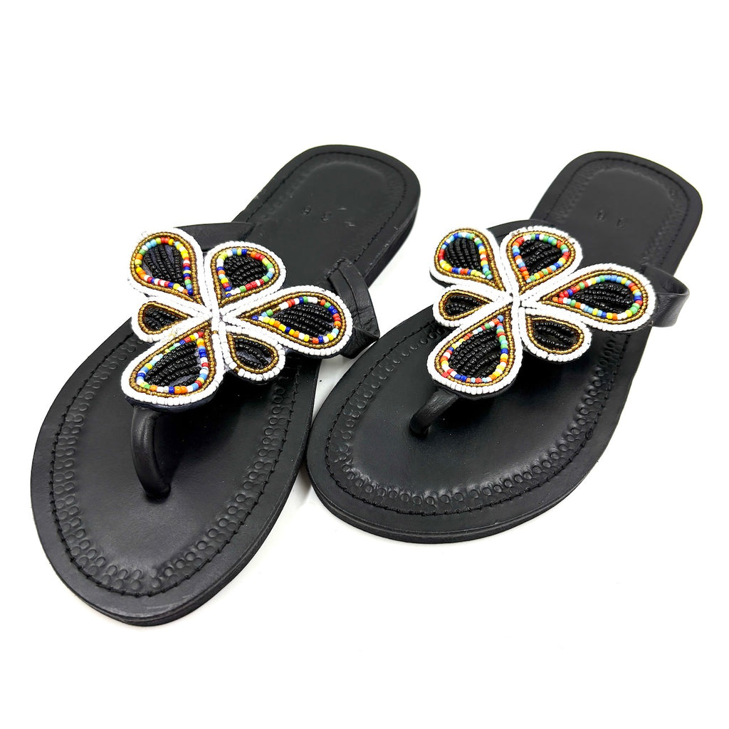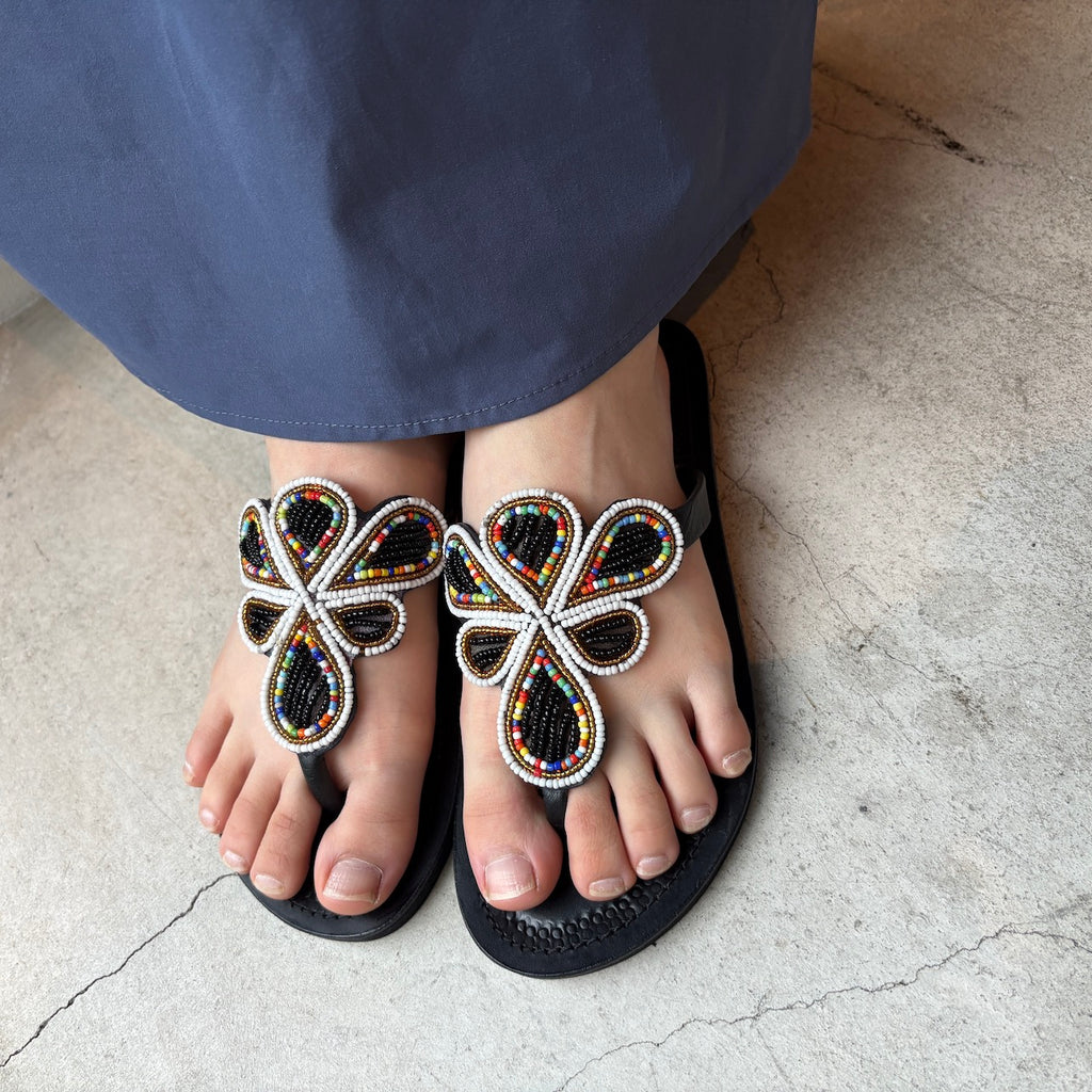 カラフル・ビーズ・サンダル - ノワール・フラワー -
