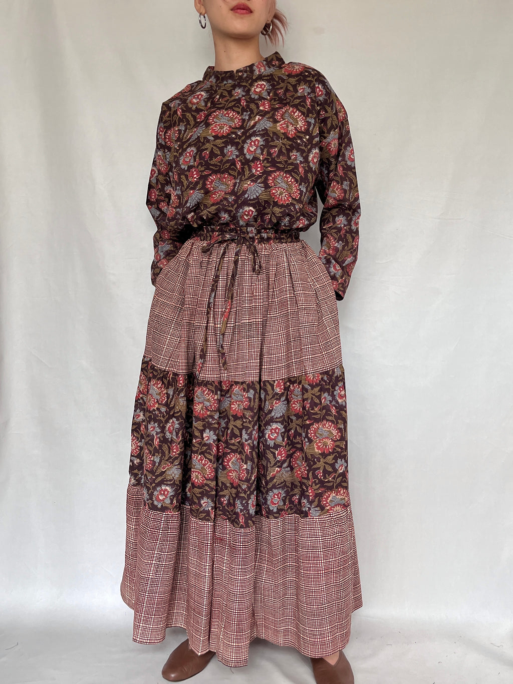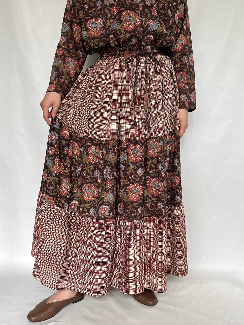 No.9【saruche】切り替えティアードスカート - ダークブラウン -