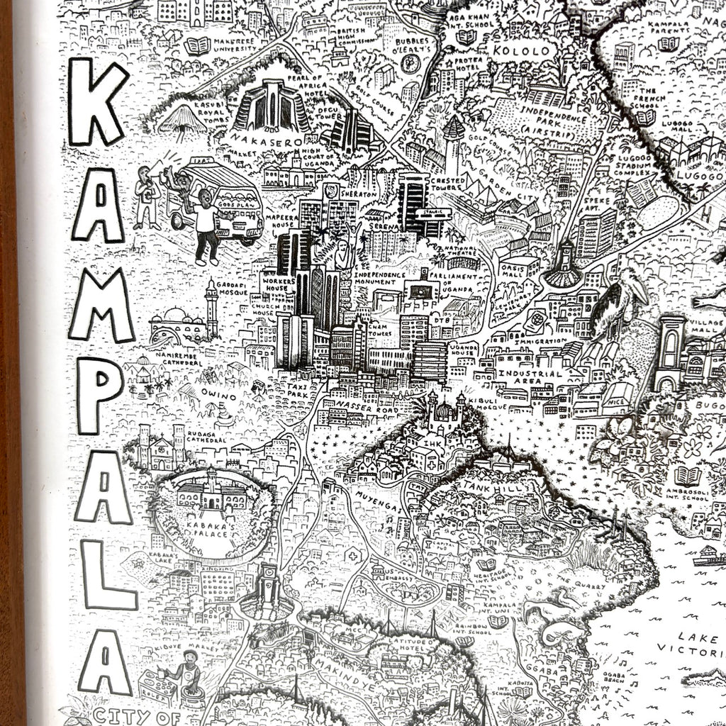 このイラストを見ていると、カンパラ市を旅したような気持ちになれると思います。