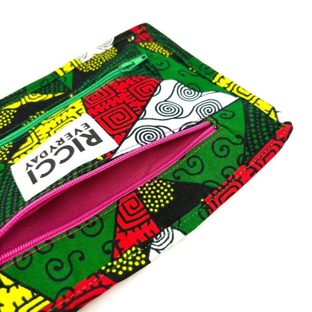 1. The RICCI EVERYDAY product uses African wax print cloth. At the time of the product production, water is passed through the cloth, and coloring is applied to prevent discoloration as much as possible. However, please refrain from using it on rainy days, as it may discolor due to extreme water wetness or friction.
