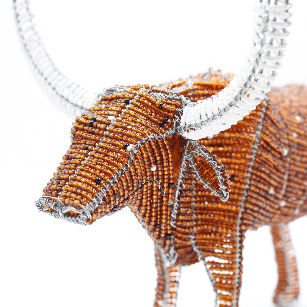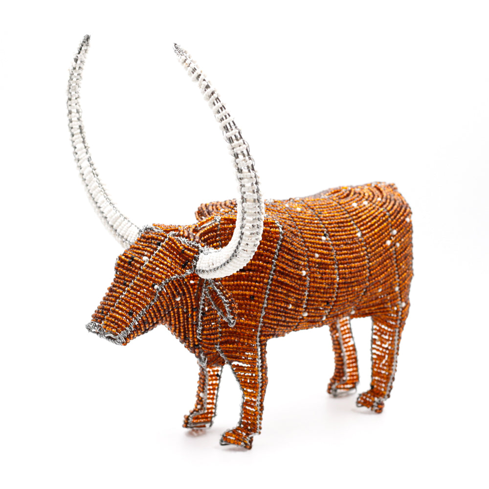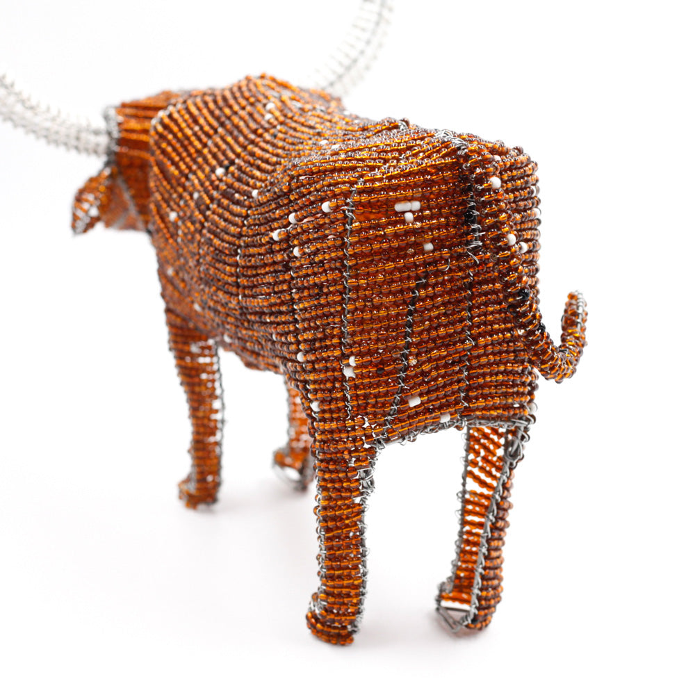 ケニアの伝統工芸であるビーディングの技術を使い、ウガンダでよく見かける立派な角をもったウシ"Ankole"のオブジェです。本物と同じフォルムを再現しており、見かけたときは心が高鳴りました。