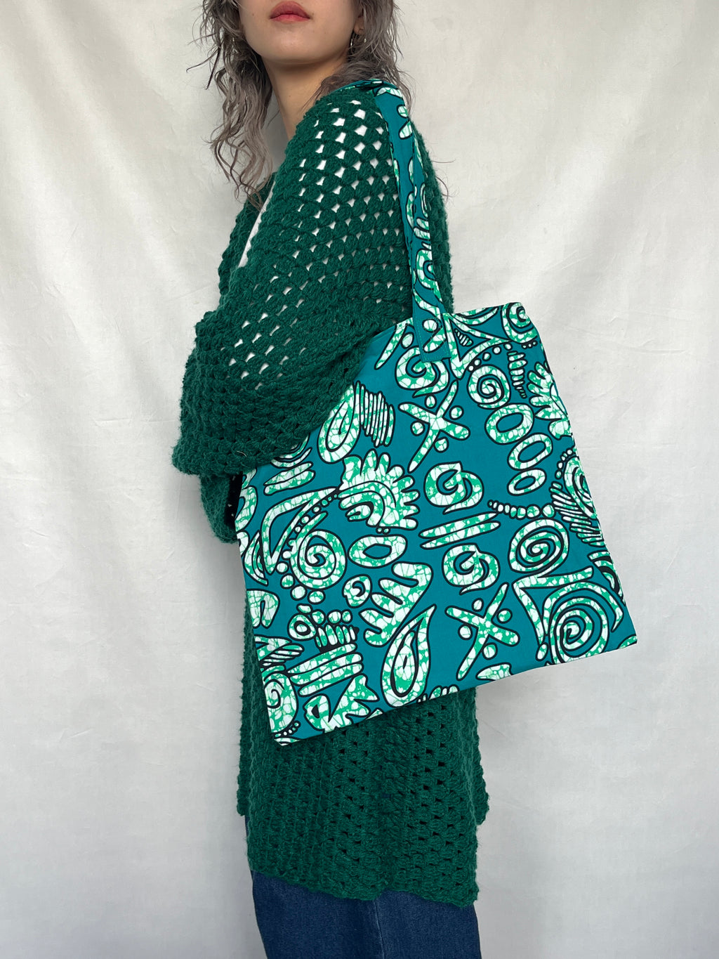 カラフルなアフリカンプリントを使用し、たっぷりと物が入る正方形のエコバッグです。