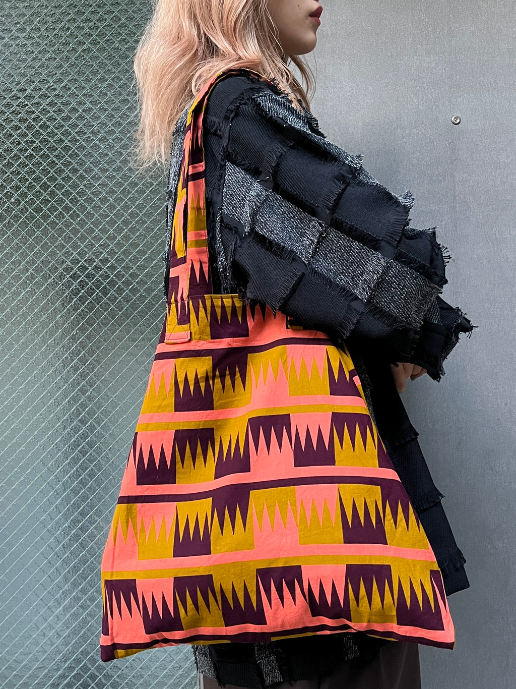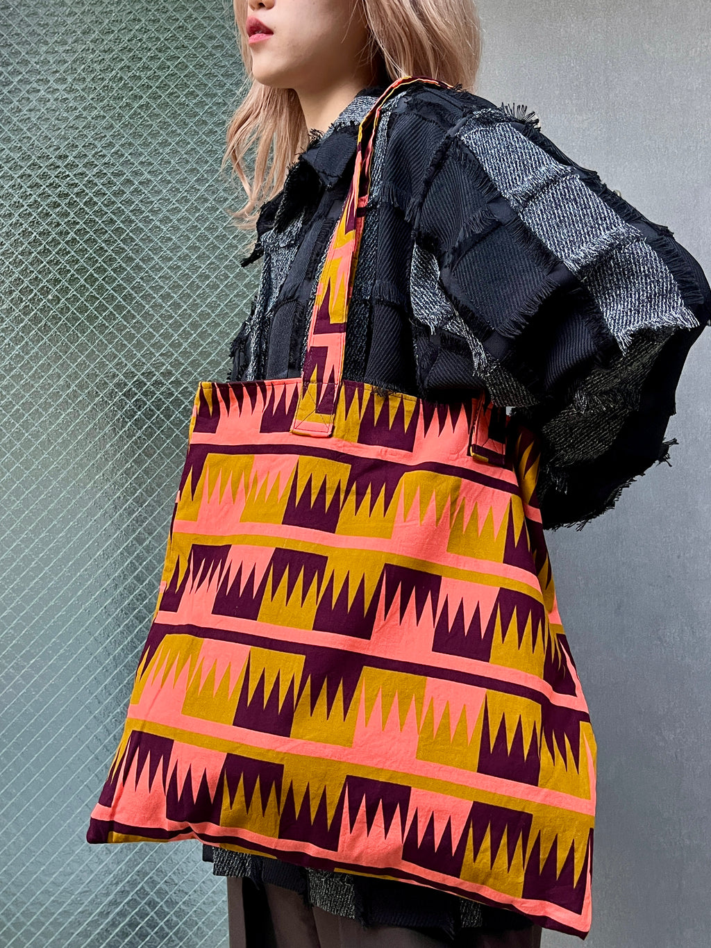 カラフルなアフリカンプリントを使用し、たっぷりと物が入る正方形のエコバッグです。